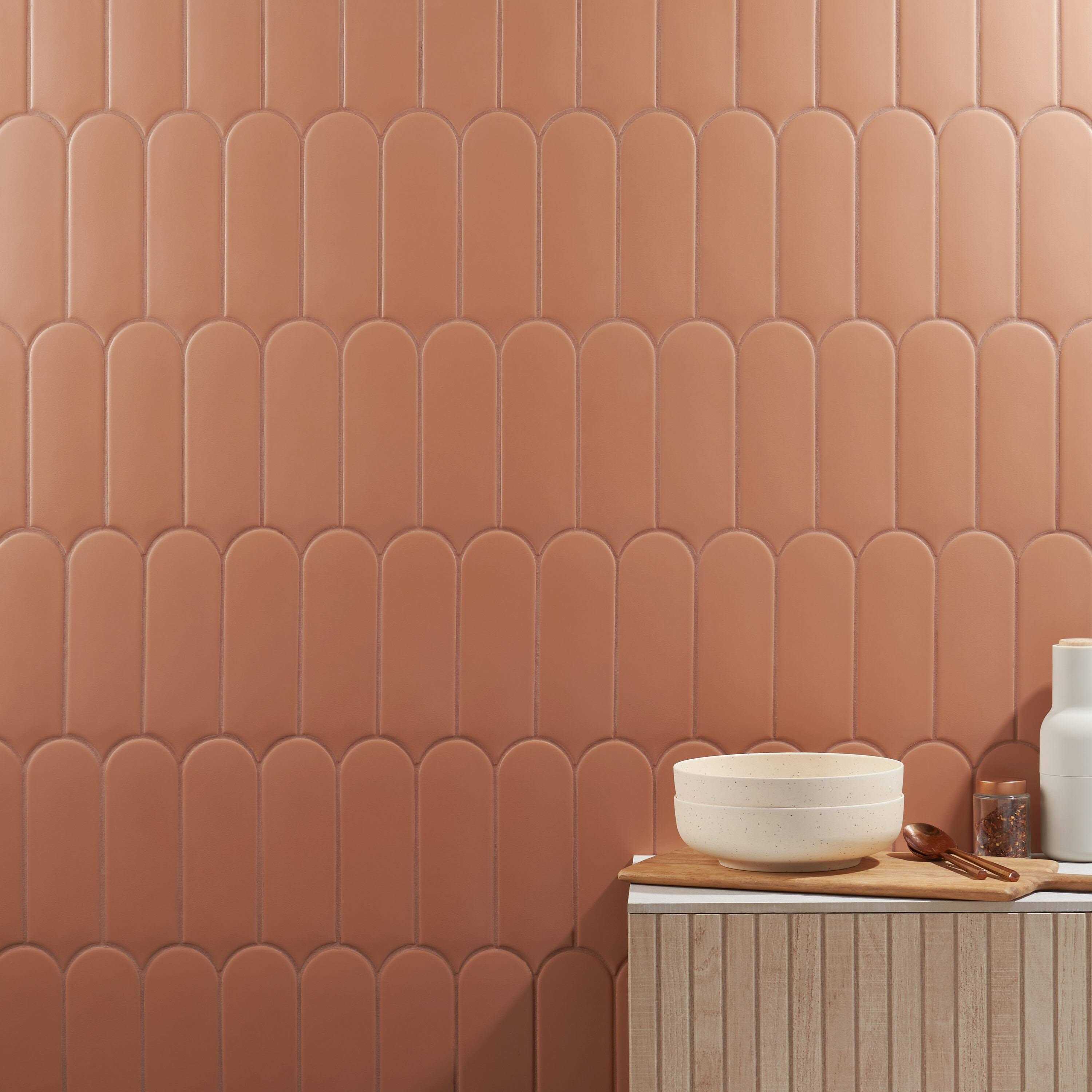 - “The Blade series breathes new life into the classic subway wall tile with an elongated ceramic fish scale pattern in matte or glossy finishes”