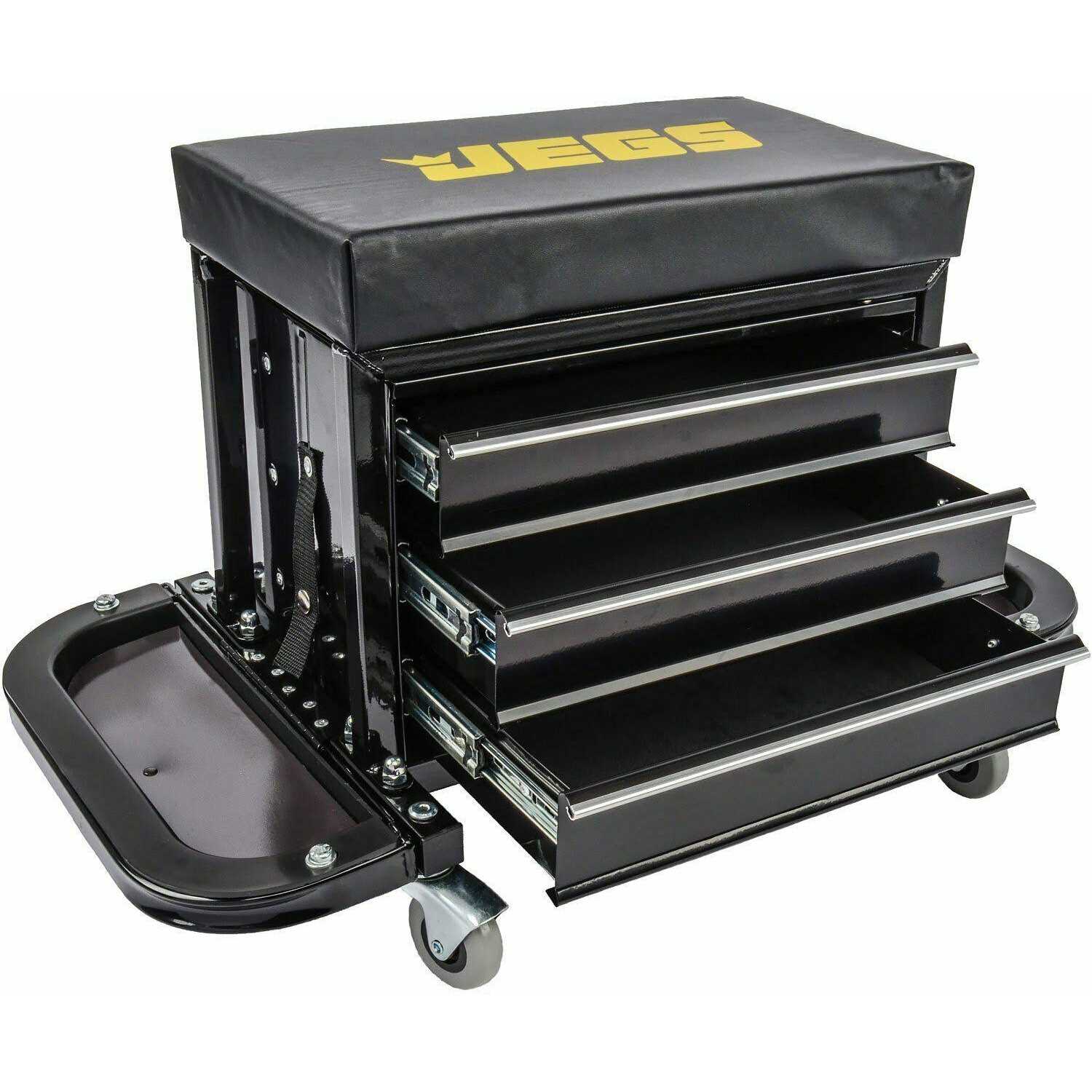JEGS 81155 3-Drawer Rolling Tool Box Seat