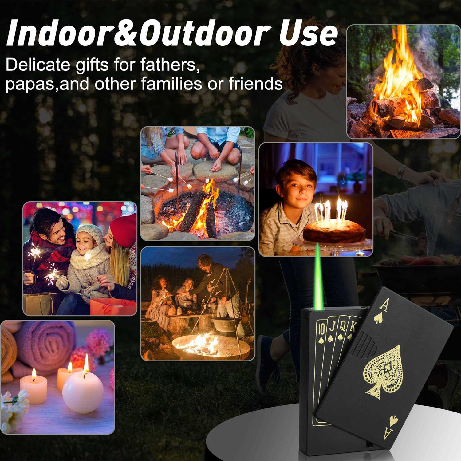 【Jet Torch Flame Cool lighters】Cool lighters for men with powerful and windproof jet torch flame,you can use it on the outdoor camping barbecue,hiking or fishing etc. 【 UV Money Check and Windproof Design】Equipped with LED UV currency detection function, it can help you check money. – And windproof can used on outdoor ocassions especially extreme circumistance. 【Excellent Craftmanships and Delicate Package】made of high quality zinc alloy stronger and durable with cool poker ace appearance. – Ace lighters can be a Valentines Day gifts for men boyfriends husband or Christmas gift for dad grandfathers boys. 【Pocket Size&Refillable&Adjustable】Windproof torch lighters is slim as 2.3inches*1.6inches*0.4inches and lightweight 65 grams.so it is portable with you. – And it is can refillable so you can use it repeatedly(Butane Not Included). You can adjust the flame’s size on the bottom of this lighters as you would like. 【Great Birthday&Christmas Gifts】Cool lighters can be as the birthday or valentines day gifts for men boyfriends husband dad grandfathers boys. – Or as the christmas stocking stuffers gifts for for men dad grandfathers boys boyfriends.