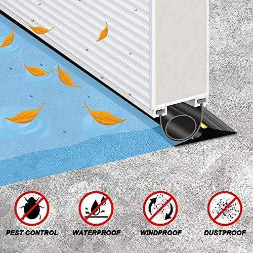 Garage Door Seals by Jin&Bao. Details:Our Garage Door Threshold Floor Seal Gives You a Clean and Tidy Garage An easy DIY project to keep your garage dry, quiet and clean. Highly durable and able to withstand being driven over by most vehicles. The garage door threshold seal has been designed to form a watertight seal between the garage door and the floor. Energy costs may be reduced as a result of heat conservation (seal prevents drafts, cold air, snow, and wind-blown rainwater from entering the garage through the gap under the garage door). Please Notice: Due to some factors such as long-distance transportation, the threshold weather stripping may appear slightly curved. This is a natural phenomenon because the material is natural rubber. Adhesive/cement necessary for installation is not included.