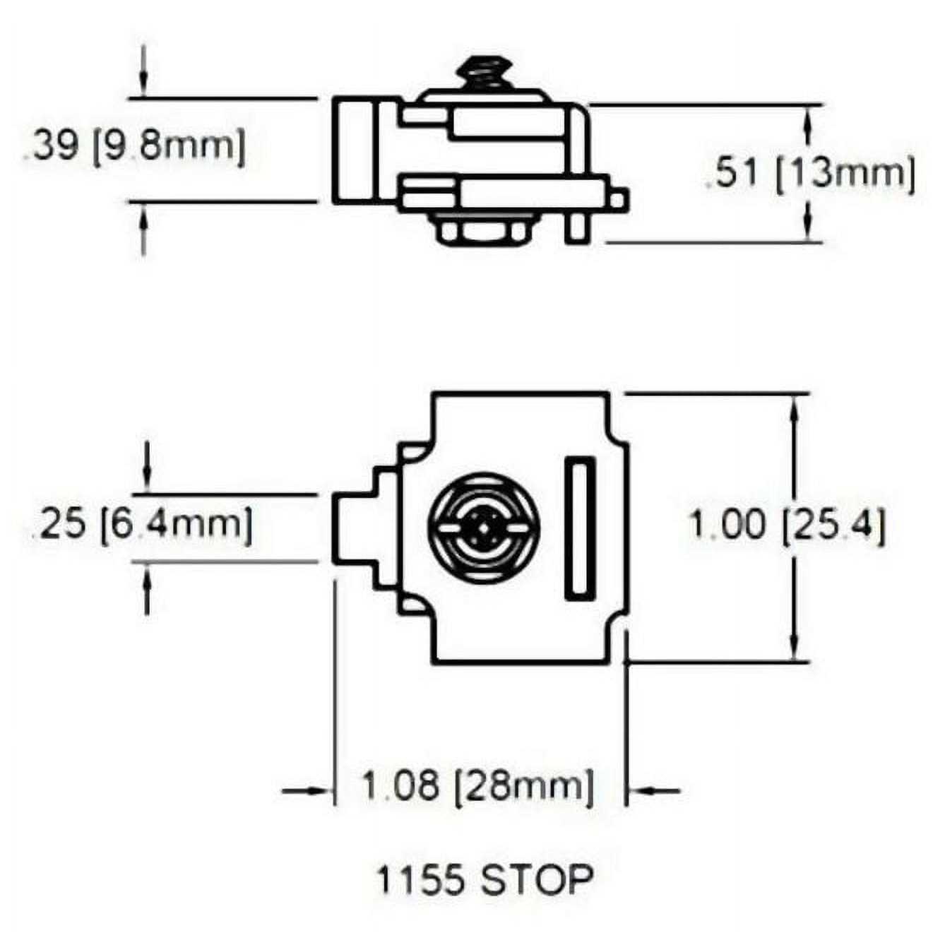 Johnson 1155 track stop for use with Johnson 100, 111 and 2610 Series box track. 2 required per track.
