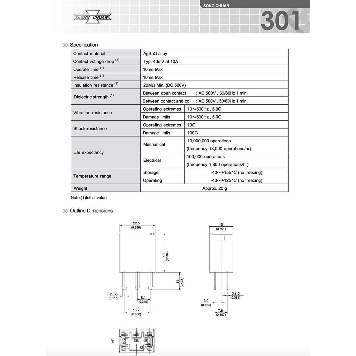 JOINAP Automotive Purpose Relays 301-1C-C-R1-U01-12VDC 5 Pin (4pack)