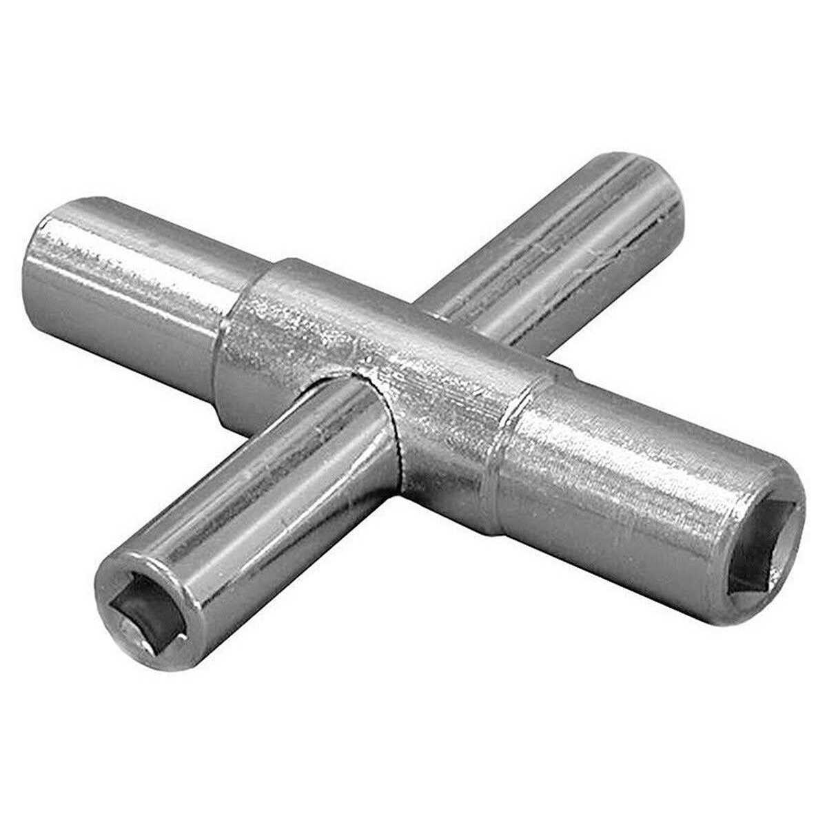 The 4-Way Faucet Wrench gives you the versatility of four wrench sizes in a convenient, all-in-one design. This item works great on stop cocks, sill cocks and valves with square heads. The cross-shaped design allows for easy gripping and turning power.