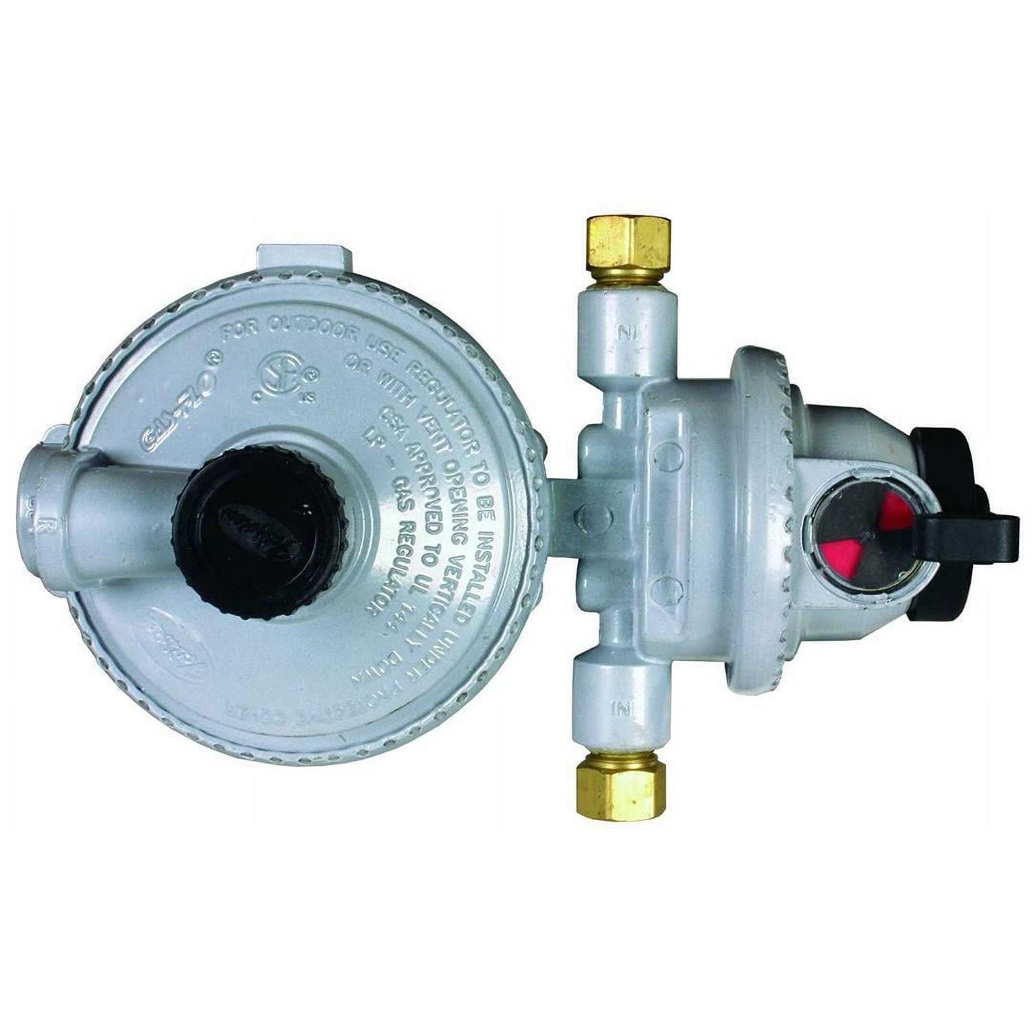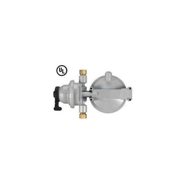 The JR Products Automatic Changeover Regulator automatically redirects LP gas vapor flow from an empty designated service cylinder to a reserve cylinder without interruption. A green light indicator dome changed to red when the service cylinder needs to be filled. 1/4 inch inverted flare inlet connections. 3/8 inch FPT outlet connection. Zinc die cast. Molded rubber diaphragms. UL Approved.