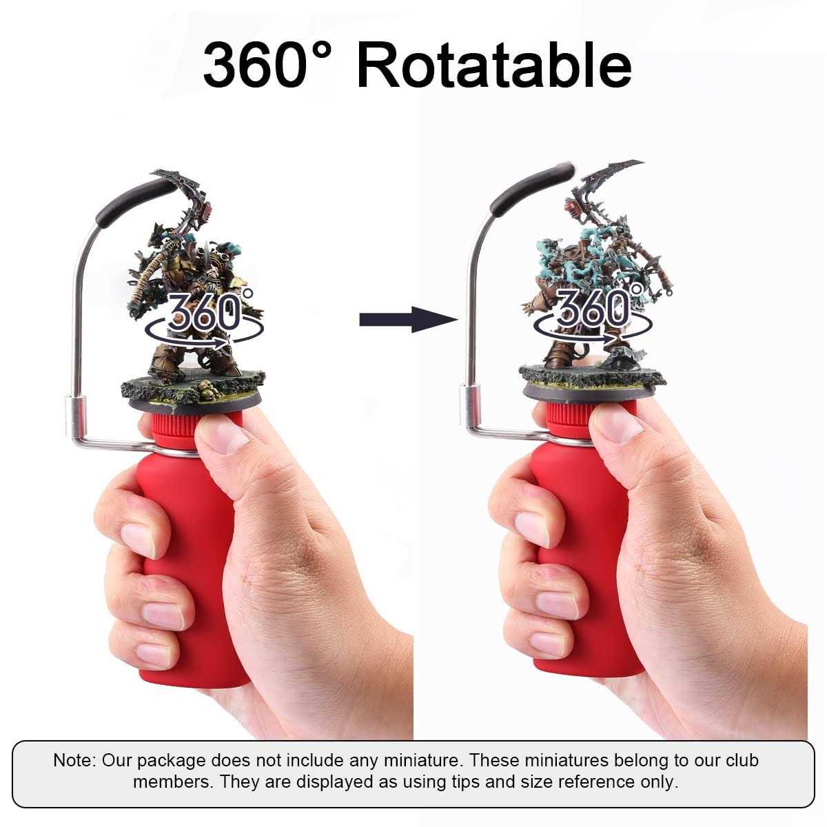 【Matte Surface】This handle has a matte and soft surface. It will offer you a comfortable grip feeling. 【About first Installation】Please read the Installation Guide in the detail pages. It will help you to save effort in first installation. 【Anti Shake Degisn】The metal bracket allows you to hold your hand/finger on it. Make your hand more stable while painting small detail of your miniature. 【360° Rotatable】360° Rotatable miniature setting cap allow you to adjust your painting position easily. Make your miniature painting more enjoyable. 【5 PCS Setting Caps】The package includes 5 pcs of miniature setting caps. Easy to switch, and allow you to paint multiple models at once. Especially good for doing fast paint for miniatures squad.
