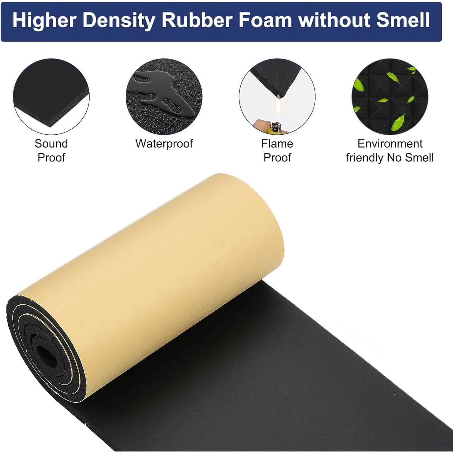Sound Insulation Acoustic Foam help to reduce noise and provide sound insulation in your room. These soundproof wall foam improve sound quality inside your space by reducing flutter echoes, reverberations and reflections. Premium Sound proof material for sound insulation. Higher Density Rubber Plastic Foam, 45kg/m³ in foam layer makes a more effective reduction of noise. Excellent at Flame & Water Proof. B1 Class Fire Resistant. Totally water proofing, unlike wedge sponge foam, absorbing water might causing unpleasant smell. Easy to Install at Arrival. Self-adhesive acoustic panel has self-adhesive layer covering the entire back that can easily stick to any surface. Unlike other compressed foam, no action of water soaking or long waiting for expansion. Size: 12” x72”. Cover area of 12 Square feet. Easily cut into any shapes you want, meet your different needs. Perfect for Automobiles, Condos, Apartments, Studios, Classrooms, Factory and more.