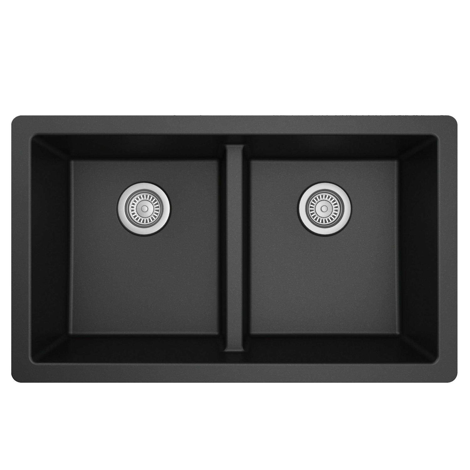 Karran QU-810 32″ Undermount Double Equal Bowl Quartz Kitchen Sink in Black