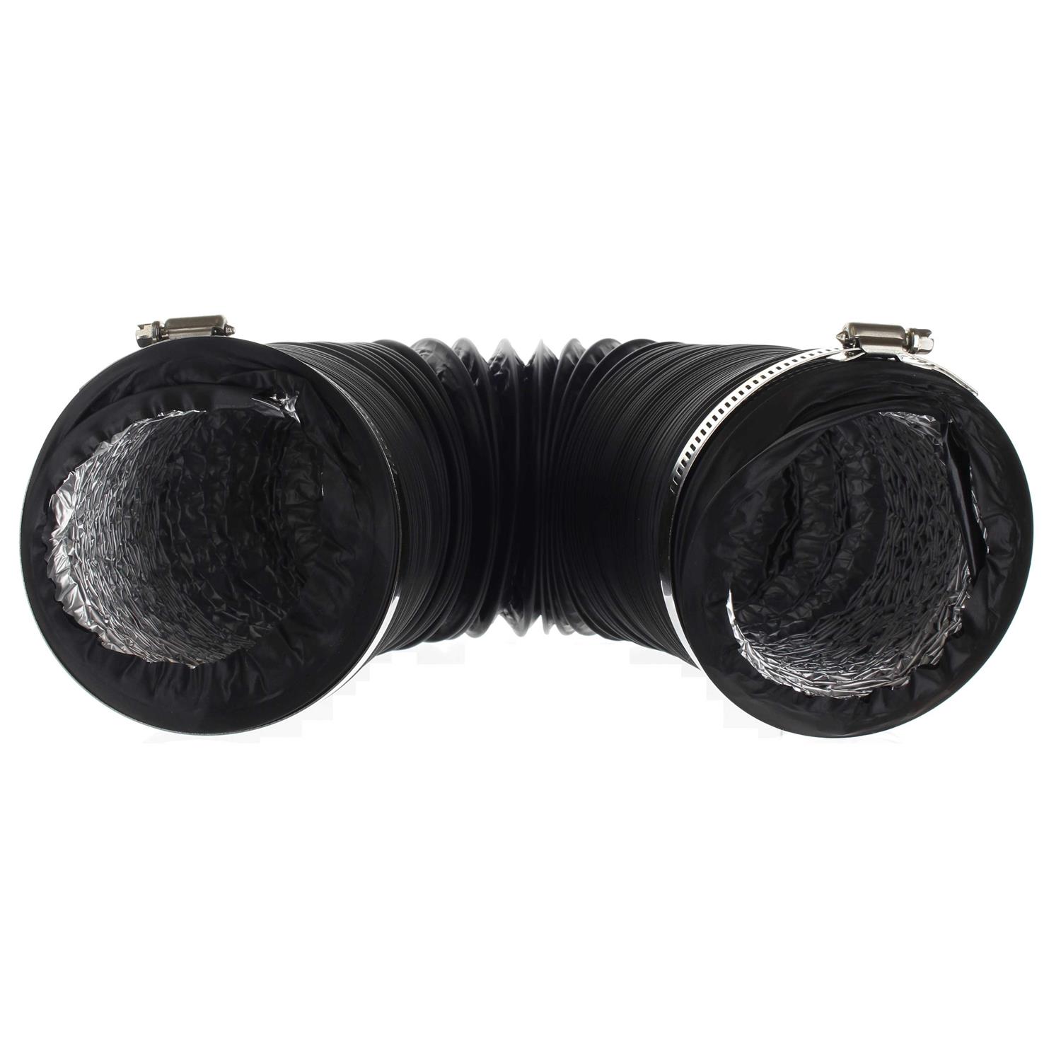 Vents by Kelaro. Details:Did you know a bad dryer duct could cause a fire in your laundry room? A build up of lint, flattened tubes, and wobbly hoses all contribute to a dangerous, yet preventable accident. Introducing the Kelaro Reinforced Dryer Transition Duct, a flexible, sturdy solution to your drying vent needs. This duct takes all the features of our standard dryer duct and wraps it in a black PVC laminate that significantly increases the durability in more challenging environments. Our drying duct is made of high quality aluminum and features an easy to install, universally compatible design. Fitted with two premium screw clamps, this fire resistant dryer duct forms a tight seal to direct fumes and humidity safely away from living spaces. The multi-ply PVC coated dryer transition duct is constructed of aluminum foil laminate that encapsulates a high density, corrosion resistant wire helix.