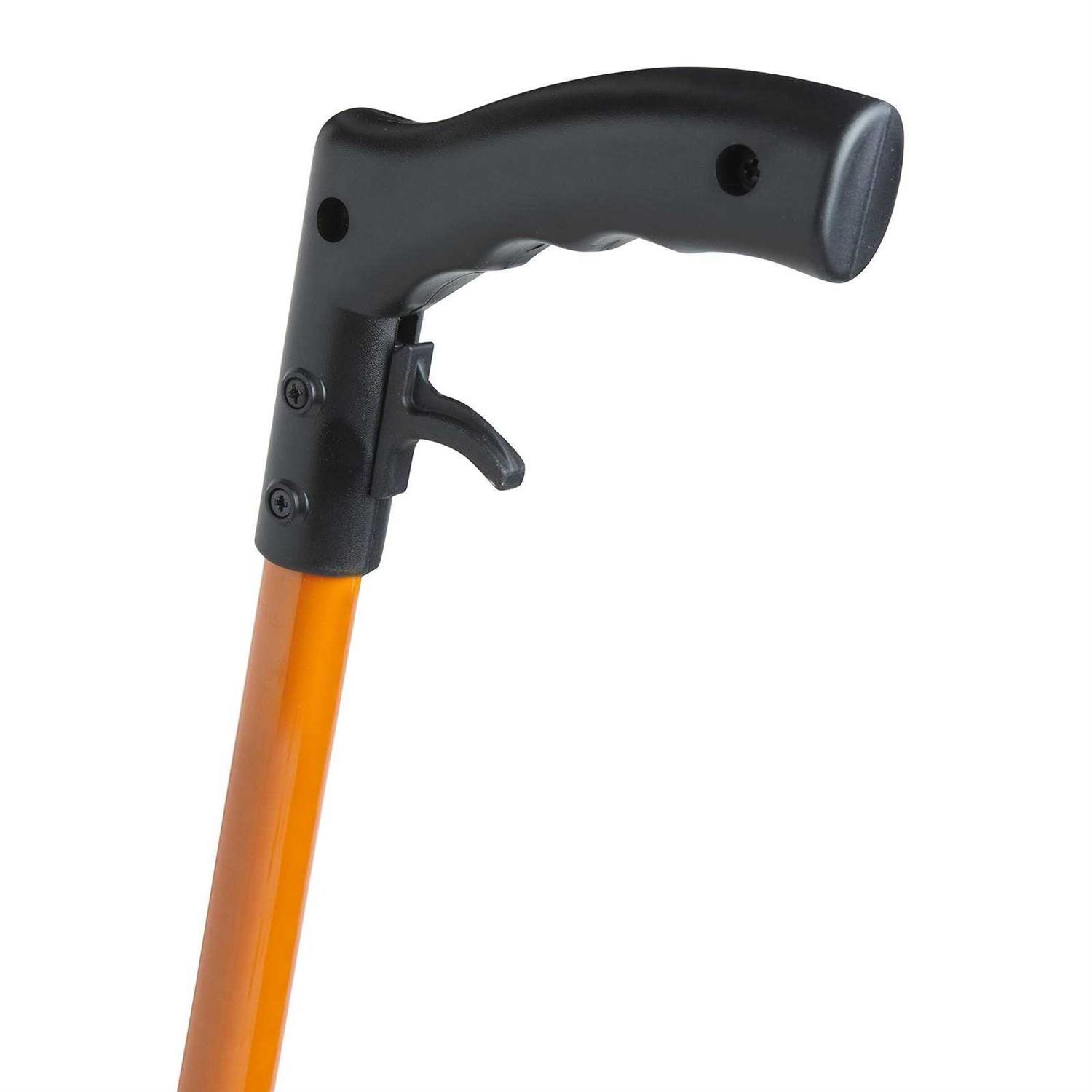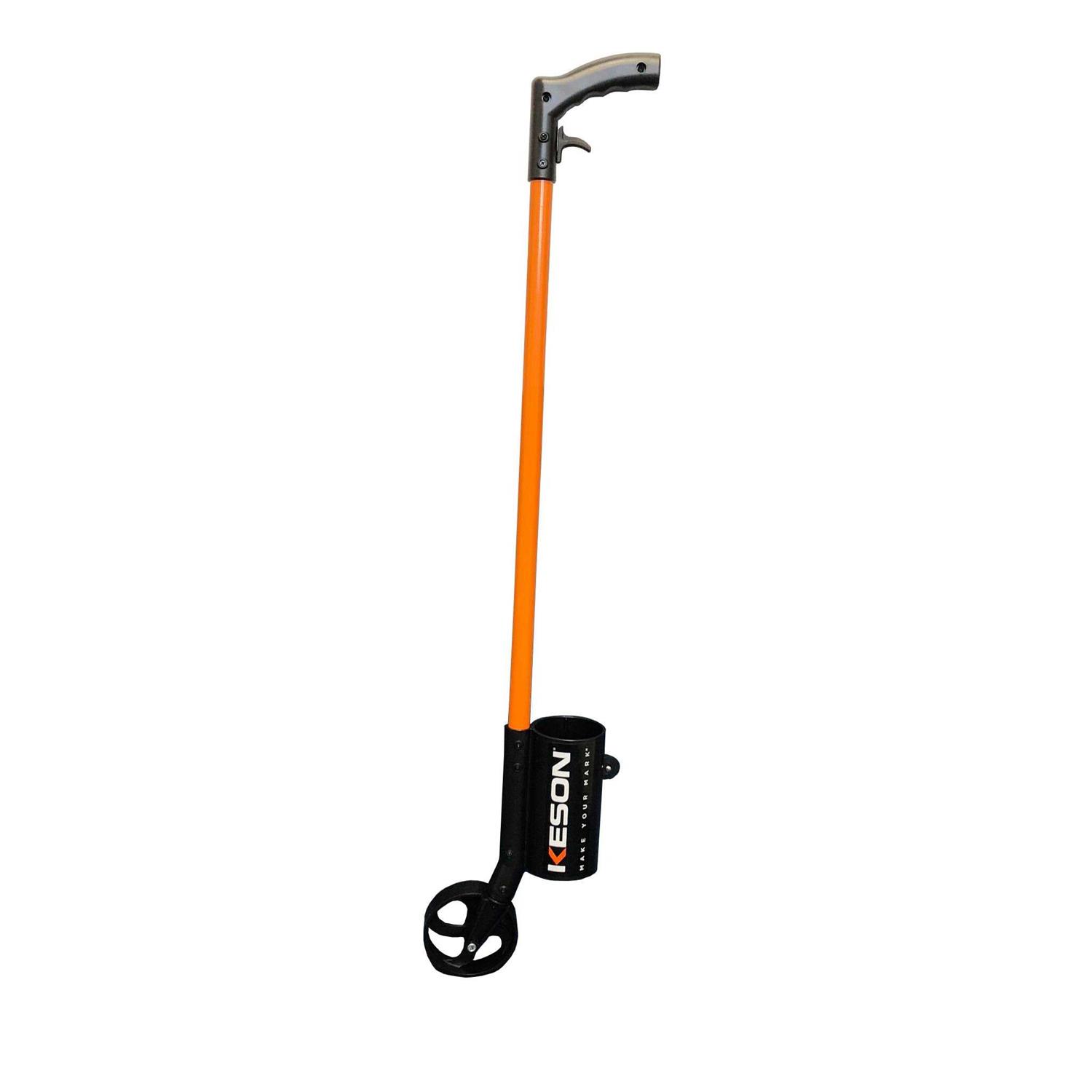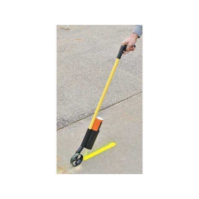 Paint applicator on a wheel eliminates bending over to spray. Made of tough, injection-molded, ABS plastic with chrome-plated, metal handle. These light weight tools feature a trigger just under the pistol grip. Engaging the trigger fires off a burst of upside down spray paint (not included) precisely where its needed.Thisspray as you walk applicatoris 34″long.Uses spray cans with inverted spray tip only.