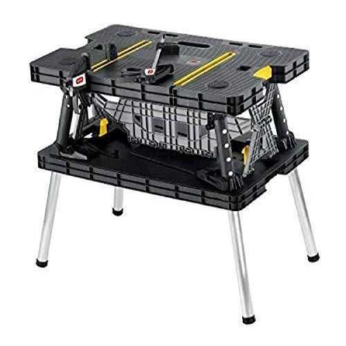 Keter – 197283 Folding Table Work Bench for Miter Saw Stand, Woodworking Tools and Accessories with Included 12 inch Wood Clamps – Easy Garage Storage