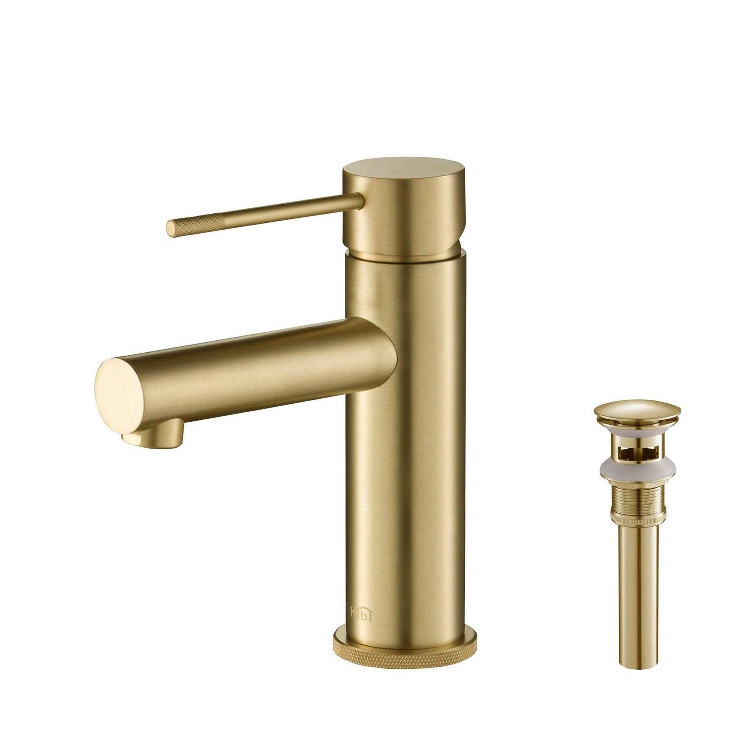 KIBI Solid Brass Single Hole Bathroom Faucet with Pop Up Drain Brushed Gold