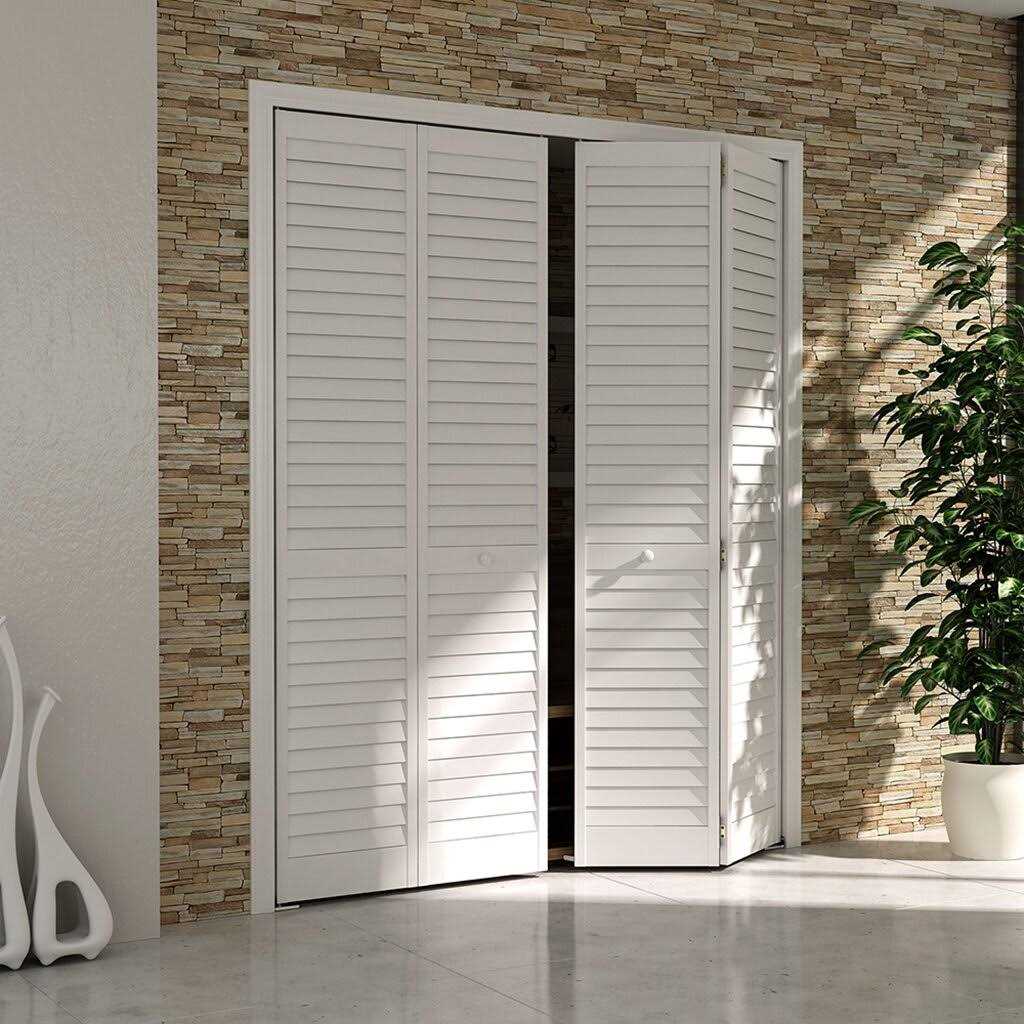 Net size is 78-3/4 in. high x 31-11/16 in. wide x 1 inch thick Opening including track of 80 in. x 32 in. wide for one door and 64 in. wide for two doors Wide 2 in. open slats to allow ventilation Primed white doors Hardware included Add the natural beauty and warmth of wood to your room with solid Pine bi-fold doors. In addition the plantation wide louvers give the doors a modern clean style. The doors are durable and easy to install with the included hardware and tracks.