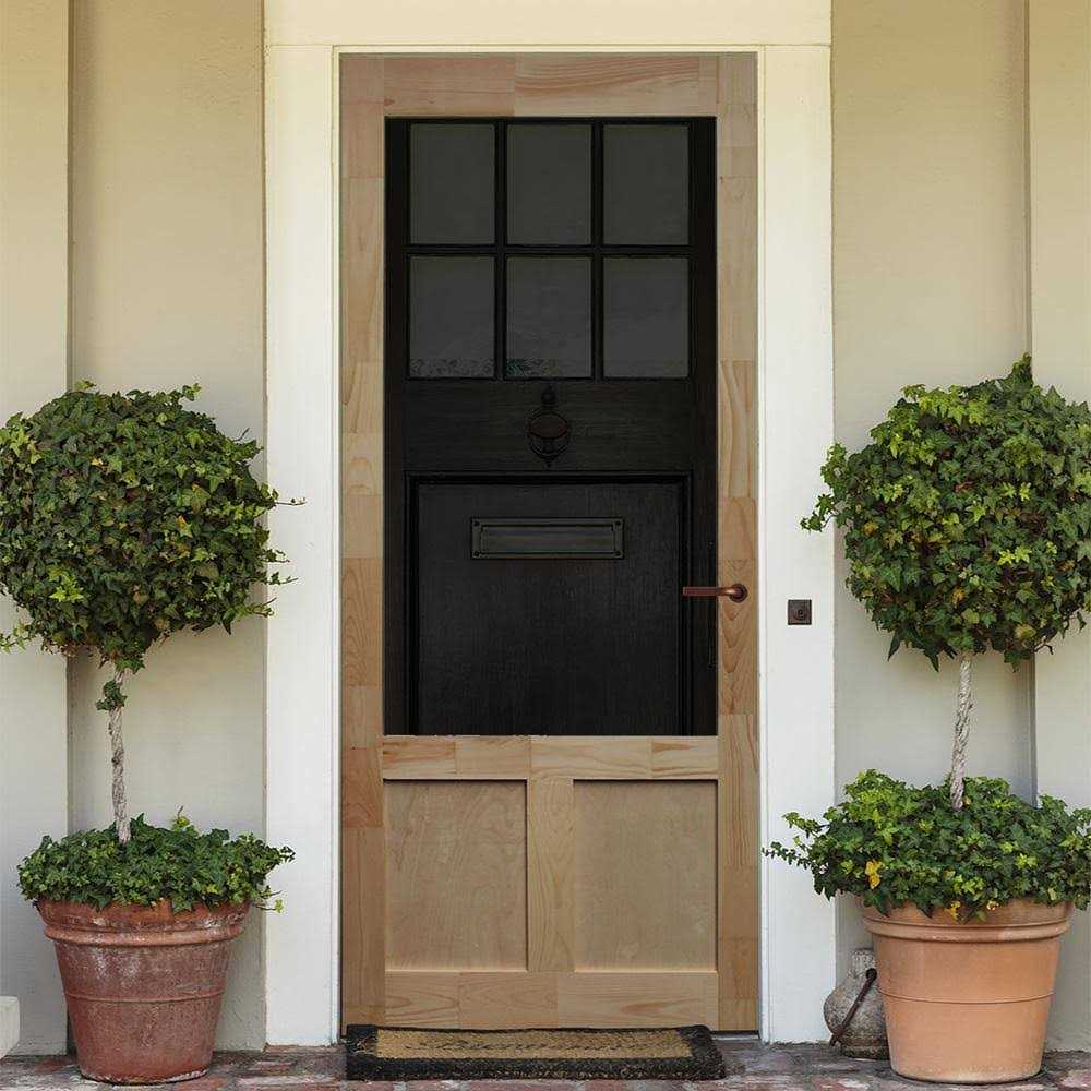 Experience the beauty and warmth of wood with a Kimberly Bay Screen Door. The door is a heavy-duty construction, made with Finger-Jointed Pine. The door is easy to install and also includes removable black fiberglass screen for easy paint or staining. Storm glass inserts can be purchased separately.