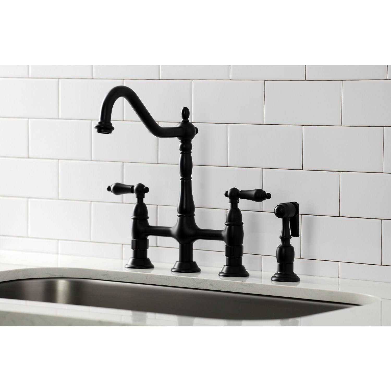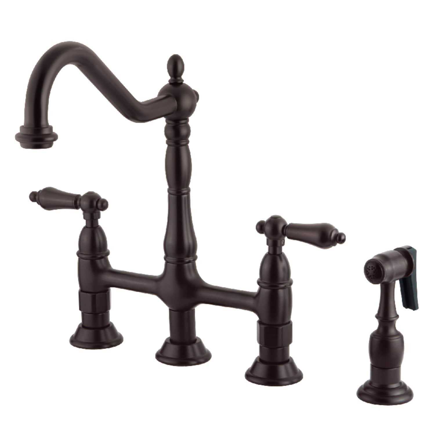 Heritage Bridge Kitchen Faucet with Brass Sprayer – Oil Rubbed Bronze