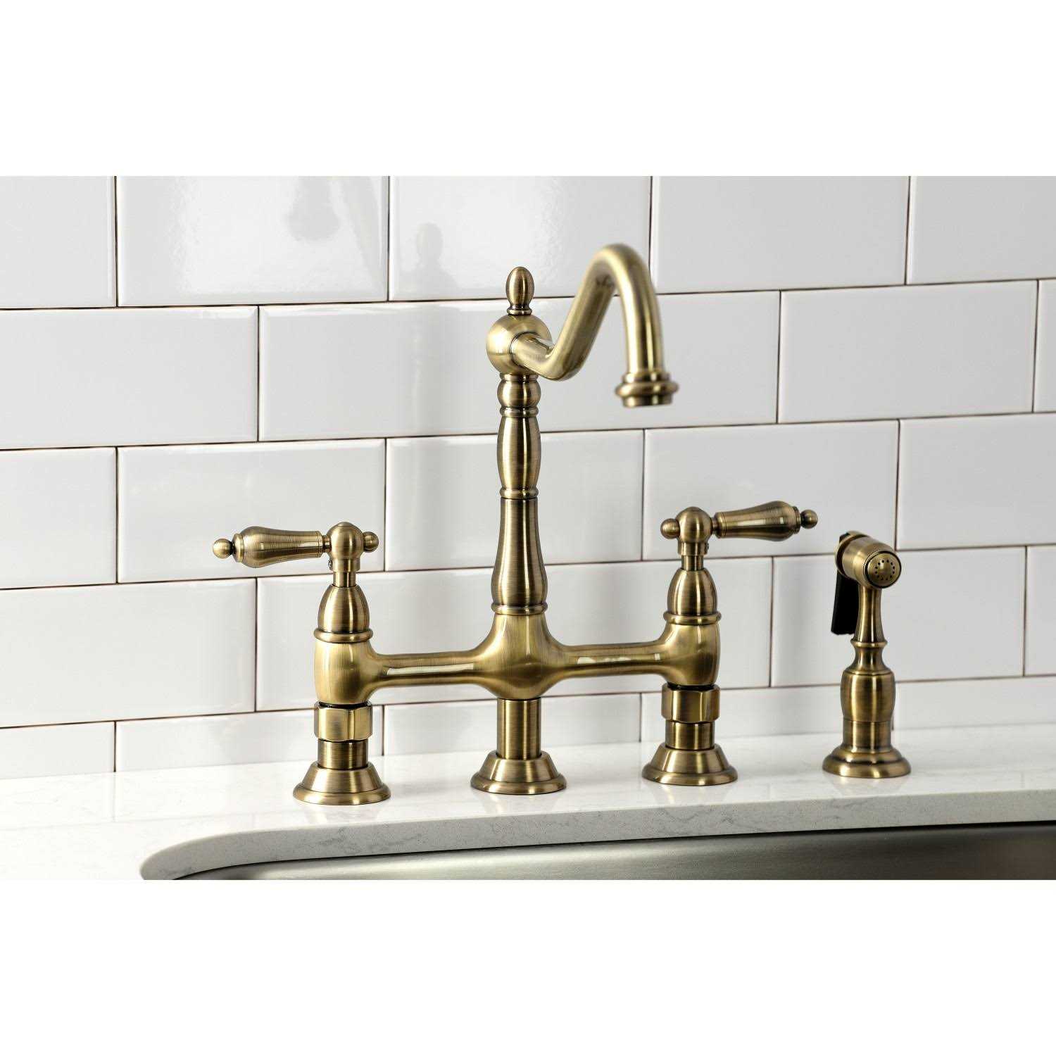 Kingston Brass Heritage Bridge Kitchen Faucet with Brass Sprayer