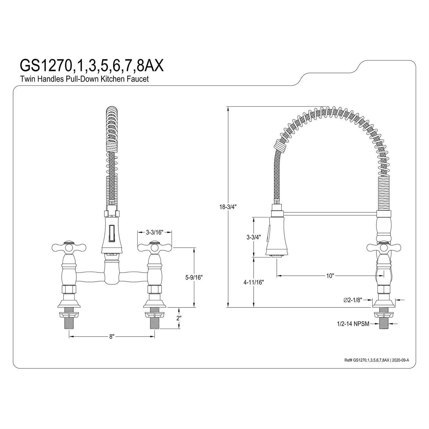 Kingston Brass GS1275AX Gourmetier Heritage Two-Handle Deck-Mount Pull-Down Sprayer Kitchen Faucet Oil Rubbed Bronze