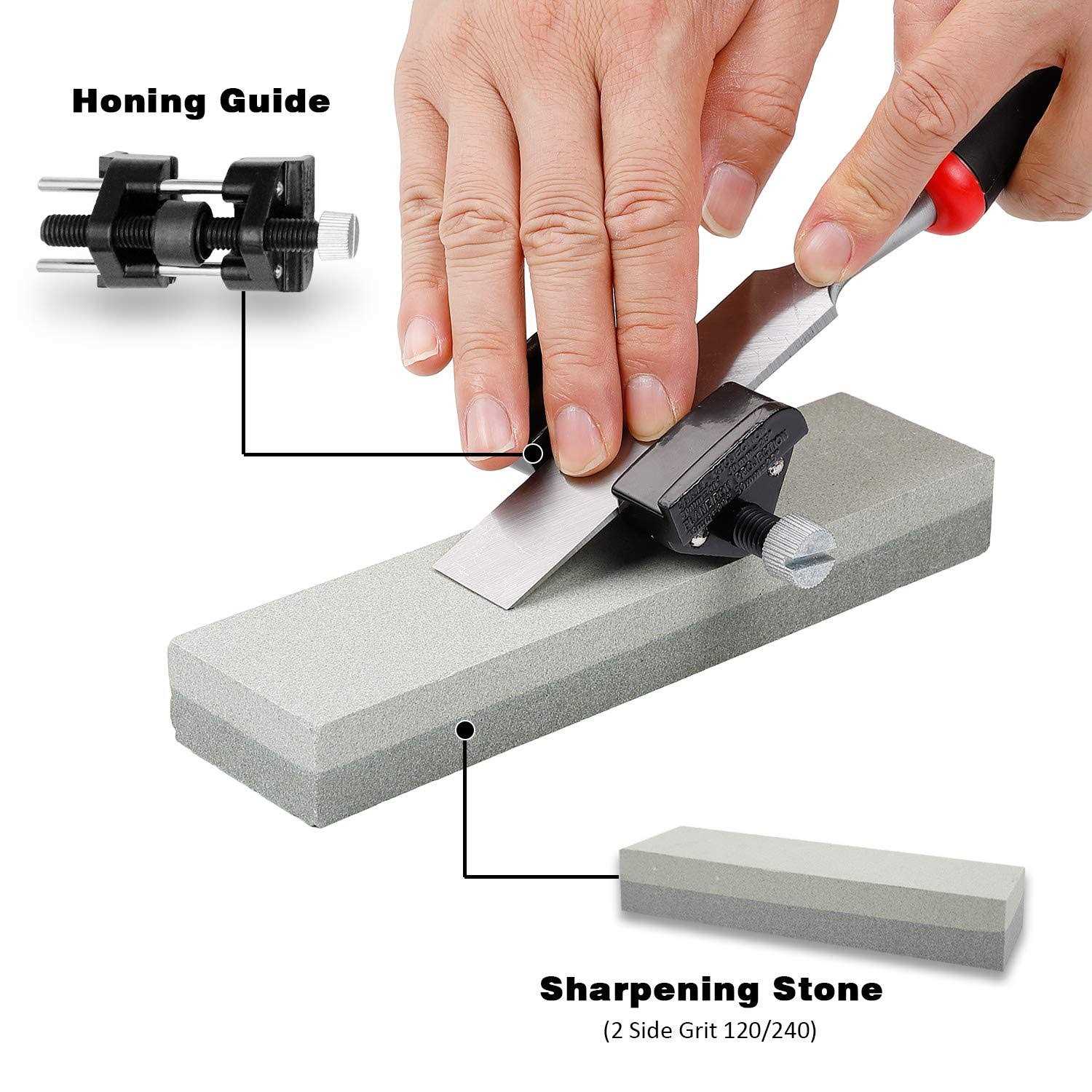 - 【Upgraded Version Of Wood Chisel Set】6x chisels 1/4″, 1/2″, 3/4″, 1″, 1-1/4″, 1-1/2″ (6mm, 13mm, 19mm, 25mm, 32mm, 38mm), 1x honing guide.