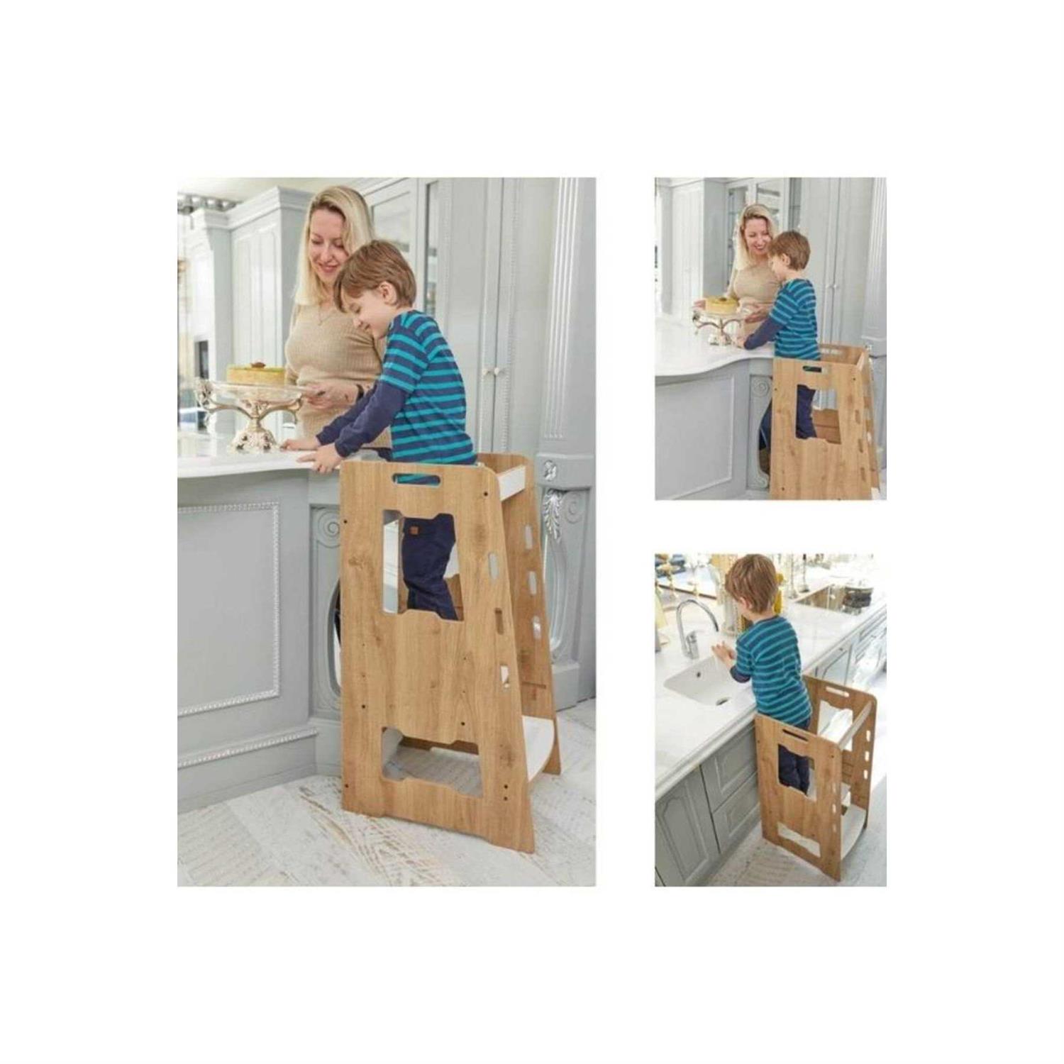 MAXIMUM SAFETY – The Montessori Tower is designed and tested for children with safety as a priority. The front and rear handrails and the non-slip strips on the steps provide additional safety. Wooden Montessori leather tower has rounded edges and anti-tip protection. CHILD DEVELOPMENT – Learning the tower helps the child learn daily tasks, meet basic needs and participate in family life. In this way, self-esteem, independence, self-confidence and motor coordination develop, and family ties are strengthened. MULTIFUNCTIONAL – The toddler learning chair allows your child to reach high. It gives your child the opportunity to wash dishes, brush their teeth and prepare a meal so that they can be involved in everyday life. With the Learn Tower, children enjoy the food they prepare themselves. ADJUSTABLE AND SIMPLE ASSEMBLY – Kitchen aid can be adjusted to 3 different heights depending on the height of your child. The kitchen tower is suitable for babies from 2 to 5 years old and has a load capacity of up to 50 kg. Easy to install in 10 minutes with a Phillips screwdriver (not included). High-quality material: the leather tower for toddlers is made of high quality MDF and all the details are carefully designed. Products are unpainted. No chemicals were used. The leather tower is antibacterial and anti-allergic. Once assembled, it has a width of 40 cm, a length of 50 cm and a height of 90 cm. MineraKids Elle a transféré toute son expérience et son personnel dans le secteur du meuble et de la production industrielle à la production de meubles pour enfants. Elle réalise tous ses travaux dans sa propre usine avec une surface fermée de 5000 m2. Tous les produits de la gamme sont fabriqués à partir de matériaux certifiés et inoffensifs. Des matériaux conformes aux normes E1 sont utilisés. Le domaine d’étude est dans le groupe d’âge préscolaire et maternelle (0-6 ans). L’objectif principal de MineraKids ; La conception d’une chambre d’enfant ne doit pas seulement être pratique, mais aussi fonctionnelle. MineraKids concevoir et produire des produits amusants, différents et fonctionnels, c’est faire partie de l’imaginaire de l’enfant.