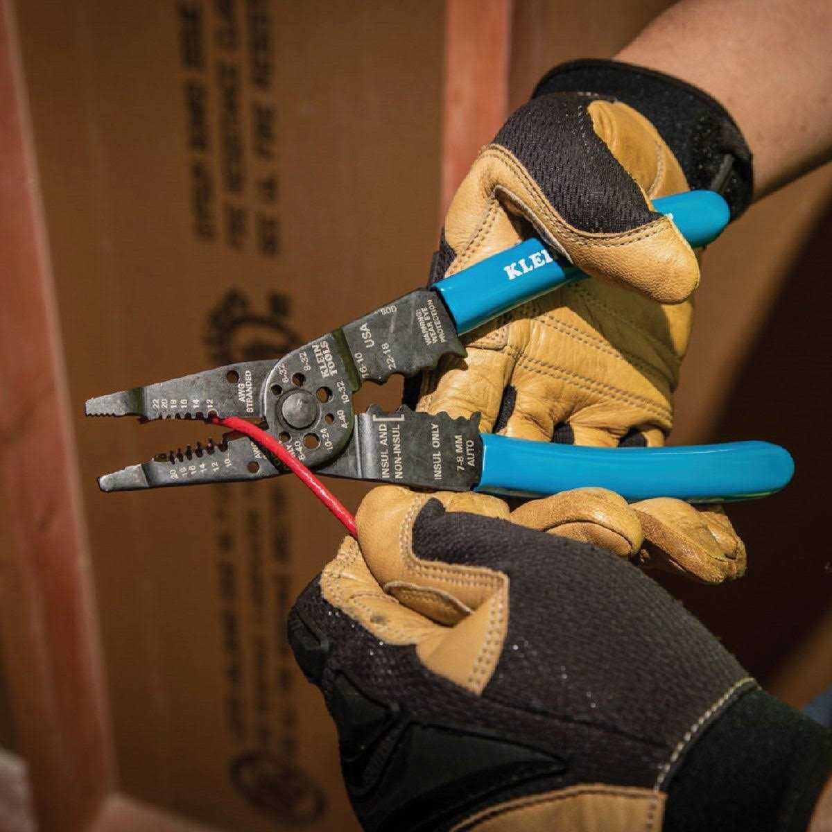 The Klein Tools Long-Nosed Wire Stripping Tool will help you accomplish a variety of projects. It has a strong steel construction that delivers professional-grade durability. It features a long, tapered nose, a wire crimper and bolt-cutting holes. This crimping stripping tool comes with gauge markings that make tasks easy and precision-fitted jaw that ensures clean, accurate performance. It also includes comfortable plastic-dipped grips that help minimize hand fatigue when working for extended periods of time. The Klein Tools Long-Nosed Wire Stripping Tool is designed to work with steel, aluminum, brass, copper, gold, silver and plastic.