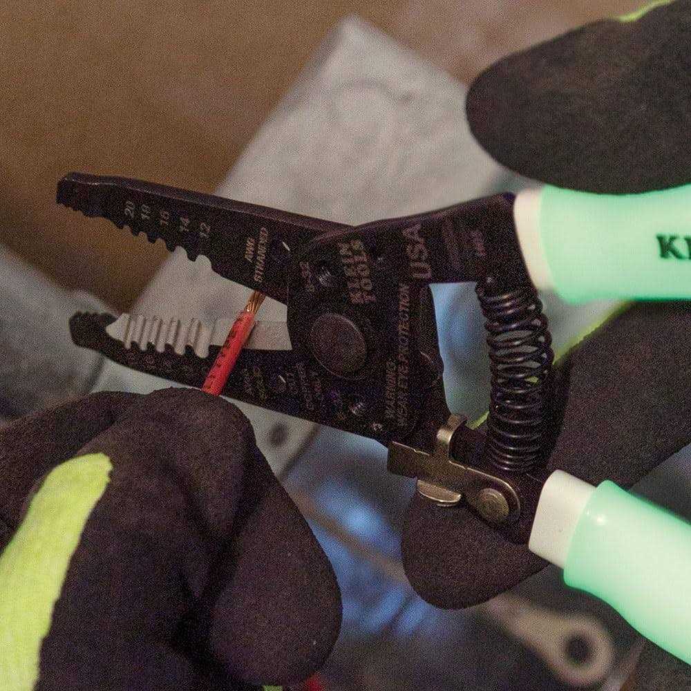Klein Tools’ High-Visibility Wire Stripper / Cutter allows you to find your tools in the dark. The glow-in-the-dark grips can stay illuminated for up to 30 minutes. Plus, they charge in natural or artificial lighting. This Wire Stripper and Wire Cutter tool cuts, strips, and loops 10-18 AWG Solid and 12-20 AWG Stranded wire.