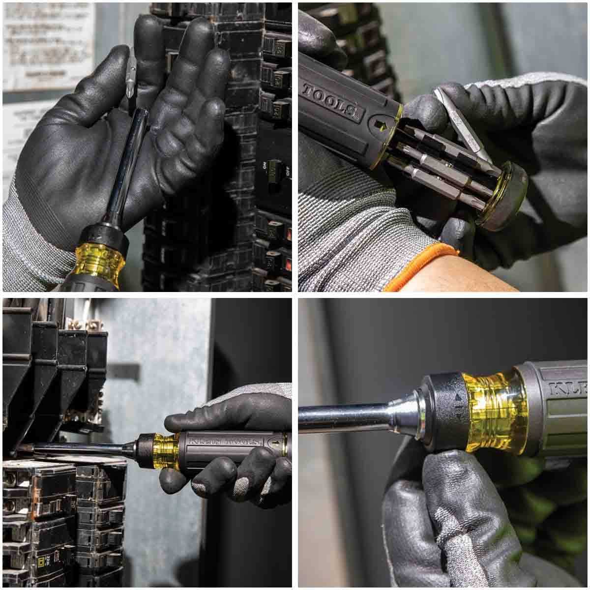 Klein Tools’ Multi-Bit Screwdrivers help make your job a little easier. The 15-in-1 Ratcheting Screwdriver’s durable ratcheting mechanism allows for faster and easier all-day driving. With the on-board storage of 14 common bits and a 1/4 in. nut driver, this is your new everyday screwdriver. This screwdriver features industrial-strength bits as well as Cushion-Grip handles for outstanding comfort and control.