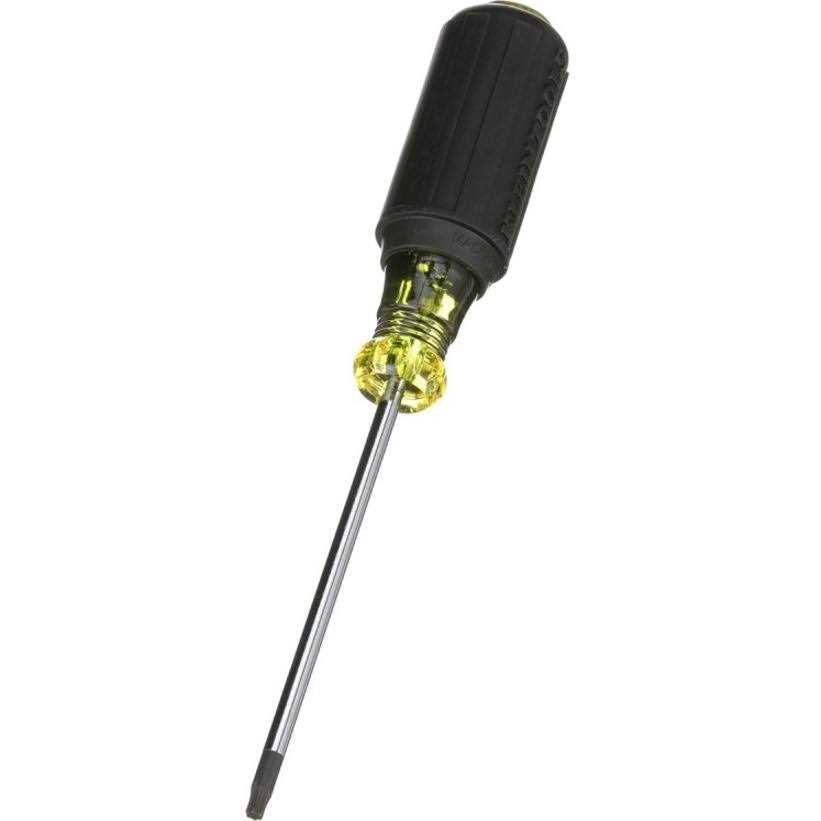 Klein Tools T20 Torx Screwdriver in green color cuts slippage, saves fasteners, transmits more torque to the work. It features cushion-grip handle that is resistant to oil, gas, water and helps to prevent slippage for greater torque and superior comfort. Screwdriver handle end is color-coded for quick and easy identification. Screwdriver has 8-5/16-Inch length and is premium chrome-plated for smooth feel and corrosion resistance. Special heat-treated 4.000-Inch shaft has black oxide finish to provide protection from corrosion. Solid, twist-resistant blade anchor is obtained by internal flanges inside handle. It has Precision-machined tip for exact fit and quickly identifies the screwdriver type and tip orientation. Screwdriver meets applicable ASME/ANSI specifications.