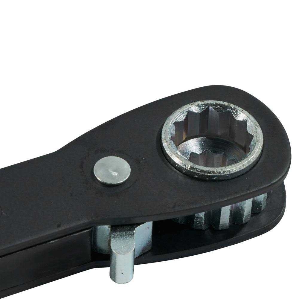 - Ratcheting Wrench features six sizes in one tool (6-in-1)