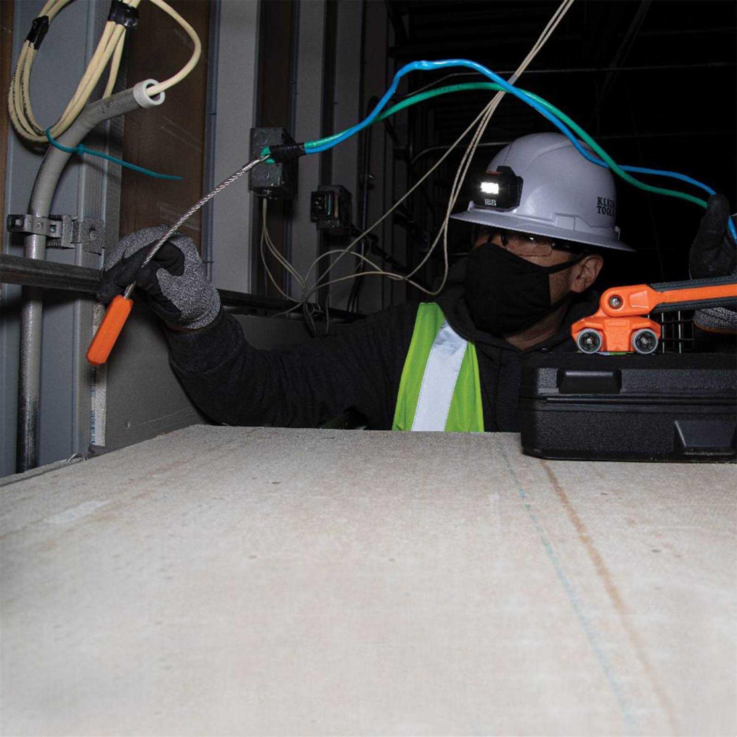 Connect wire or cable to the flexible stainless-steel leader and rare-earth block magnet that make up the in-wall unit. Simply maneuver the magnetic hand-held unit over the outside of the wall allowing the strong, rare-earth magnets to provide great hold for easy wire pulling or fishing. Both the handheld and in-wall units feature rare-earth magnets. Has easy rolling mar-resistant wheels and stainless-steel leader. Hard plastic carrying case securely stores both units. Doubles as a metal stud finder with marking notches on all four sides of handheld unit. For more than 160 years, Klein Tools has manufactured premium-quality, professional-grade hand tools that deliver the performance, durability and precision needed to get the job done right. Klein isn’t just the name of our company, it’s also our family name. Since 1857.