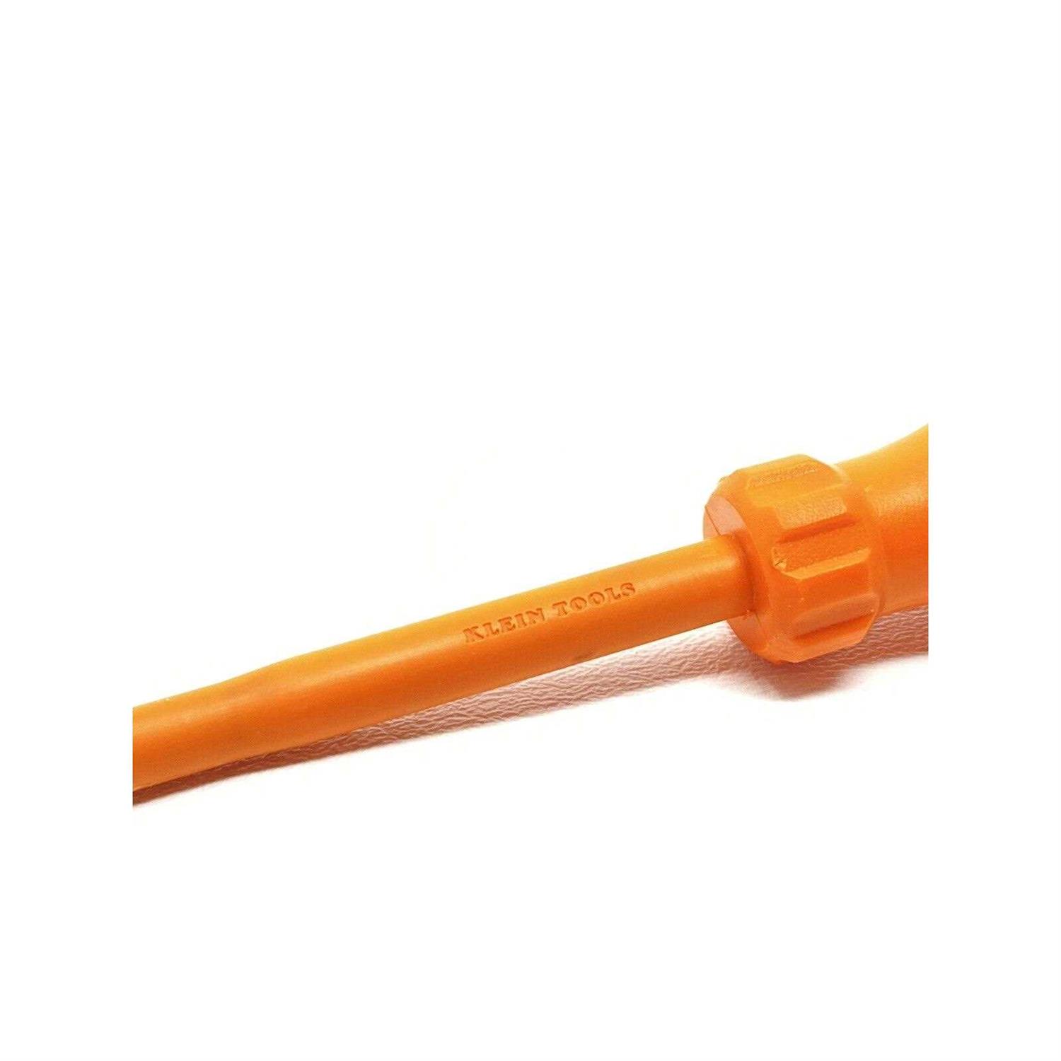 Klein Tools’ Insulated Screwdrivers feature a bright orange coating of flame and impact resistant insulation to protect against electrical shock. These tools exceed the ASTM F1505 standards for insulated tools, and are clearly marked with the official 1000V rating symbol. The tether hole in the handle provides added safety when working at height. Available in 4-Inch and 6-Inch round shanks with a variety of tips.WARNING Only use tools that are marked with the official international 1000-volt rating symbol shown above, if there is any chance that the tools will make contact with an energized source. Whenever possible, always de-energize lines and equipment prior to working on or around them. Always inspect your tools before use. Always inspect your tools before use. Keep tool clean, dry and free of any surface contaminants.
