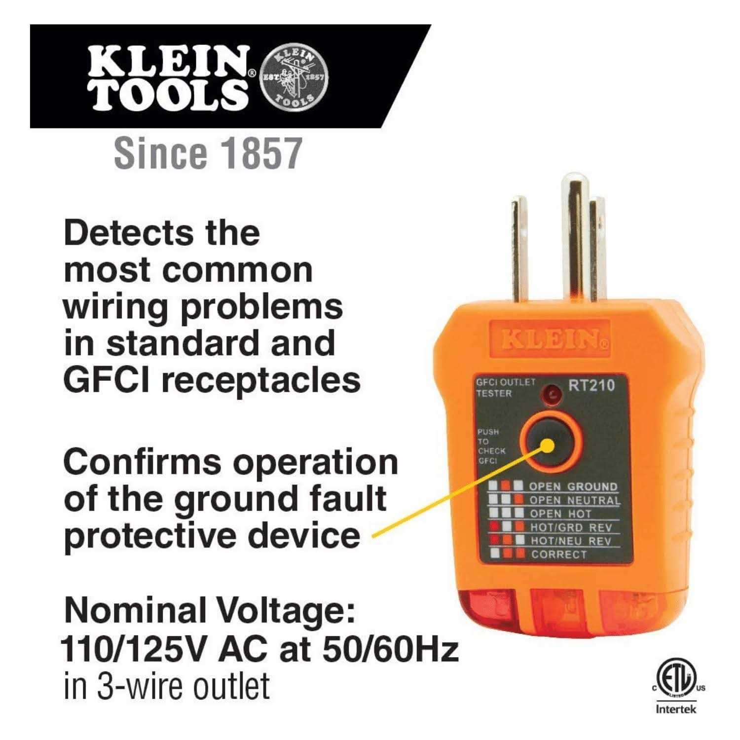 • RT210 detects the most common wiring problems in standard and GFCI receptacles