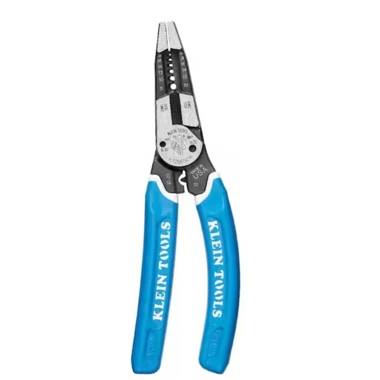 Built with the durability of pliers, the sharpness and precision of a wire stripper, and an integrated crimper, the multi-tool provides durable wire cutting, stripping, crimping, and twisting plus bolt shearing in one tool. It strips 8 to 18 AWG solid and 10 to 20 AWG stranded wire and crimps 10 to 20 AWG stranded.