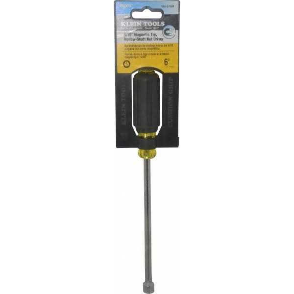 Klein Tools Insulated nutdriver has handle in yellow color that has cushioned rubber grip. It has premium chrome plated shank for smooth feel and corrosion resistance with the length of 6 inches. Driver has exclusive hollow shaft design with rare earth magnetic tip features unobstructed pass-through and even on long bolts. Driver has overall length of 9-3/4 inches and handle end is color-coded for easy identification. Driver has internal flanges that provide solid and twist-resistant shank anchor.