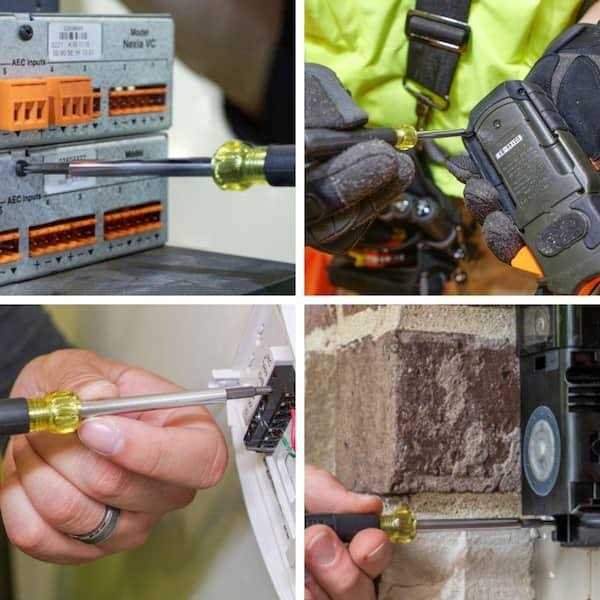 This Multi-Bit Screwdriver and Mini Ratchet Set includes 3 of Klein’s most versatile multi-tools. The 8-in-1 Impact Rated Adjustable Stubby Screwdriver (Cat. No. 32308) includes 7 different screwdriver bits and a 1/4 in. nut driver. The Slim-Profile Mini Ratchet (Cat. No. 65200) is perfect for fastening in small, tight spaces. The low-profile gear head only needs 5-Degrees of sweep, allowing professionals to fasten in spots other drivers just won’t fit. The 4-in-1 Multi-Bit Electronics Screwdriver (Cat. No. 32581) is designed for precision work and features a swivel cap for optimum control.