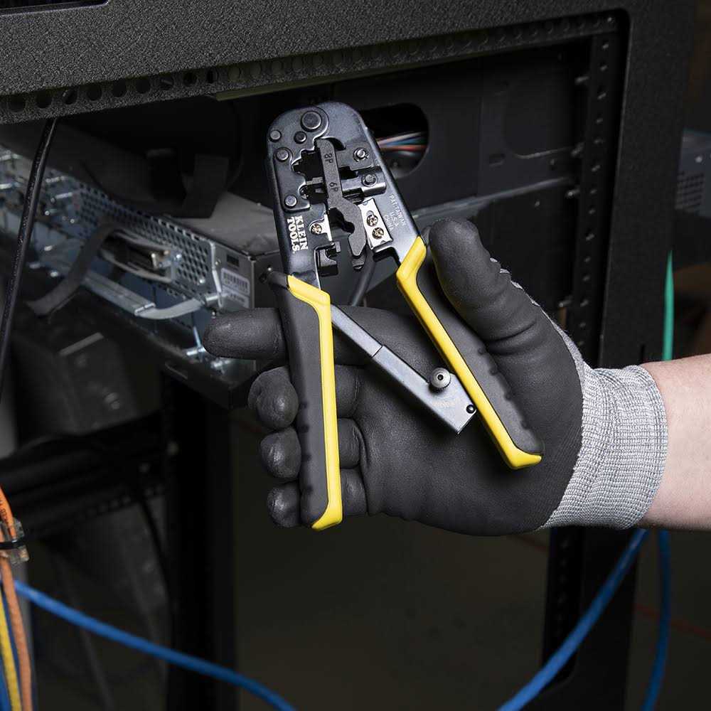 - Safety ratchet and blade guard on cutting and stripping knives reduce the risk of injury.
