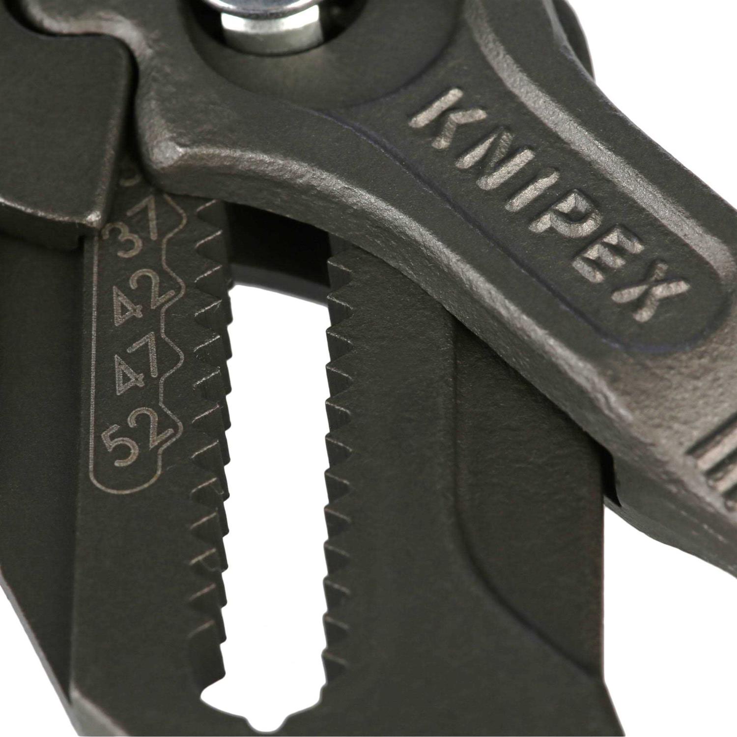 It’s finally here. Introducing the new KNIPEX 10 in. Pliers Wrench, now offered in a black finish. It has all the features you know and depend upon of the original pliers wrench along with new improvements such as being 15% lighter, an increased 2 in. jaw capacity, an increased 19 adjustment positions, a laser etched adjustment scale, a thinner jaw profile and an improved grip.