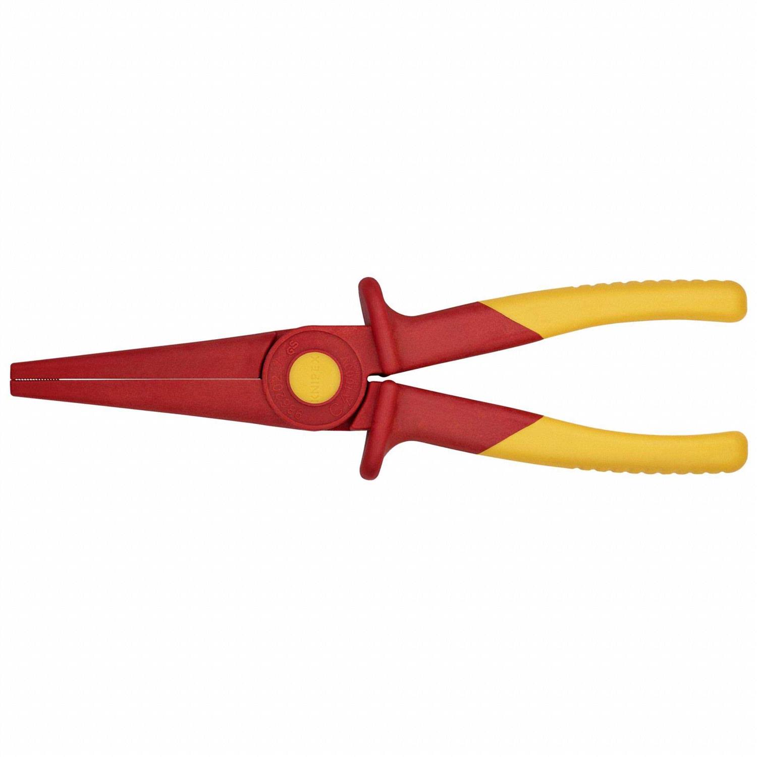 The KNIPEX 1,000-Volt Flat Nose Pliers is made of plastic material with fiberglass reinforcement. Fully insulated to reduce the risk of short circuit for meter assembly and meter blocking. Handles with soft plastic zone for better grip. These solid plastic Pliers do not cat on magnetic fields and are fully spark free. They are also excellent for use in chemically aggressive environments. Meets or exceeds 1,000-Volt insulated specification for ASTM, IEC and VDE.