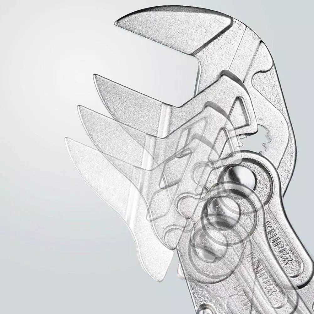 The KNIPEX Pliers Wrench is a fantastic tool for fastening, gripping, holding, and bending. Its slim profile allows easy access to confined spaces, making it one of the most versatile tools. Its parallel smooth jaws avoid damaging soft or plated materials and provide even, full-contact gripping. Unlike an open-end wrench with uneven compression that can cause surface damage, this KNIPEX pliers wrench offers zero backlash under pressure. With a 10-to-1 lever ratio, the cam action design ensures a strong and secure grip. The self-ratcheting action allows for fast, easy operation while eliminating the need for additional tools. This tool features recessed areas for a better grip and laser-etched markings in both metric and imperial. This feature is key in determining the jaw opening before setting the wrench on the fastener easily and quickly with a simple push of a button. All of KNIPEX’s Pliers Wrenches feature a pinch guard to prevent operators’ fingers being pinched.