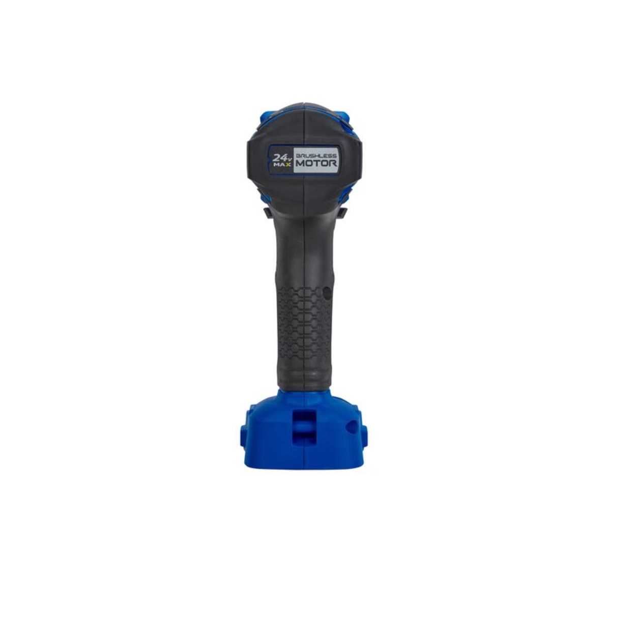 Kobalts 24-volt max 1/2-inch drive brushless cordless impact wrench provides premium performance for installing and removing high torque bolts nuts and fasteners. Its powered by a 24-volt max high capacity lithium ion battery sold separately that delivers impressive power with extended runtime. Put away the old socket wrench and get more done with less effort using the Kobalt 24-volt max 1/2-inch drive brushless cordless impact wrench.