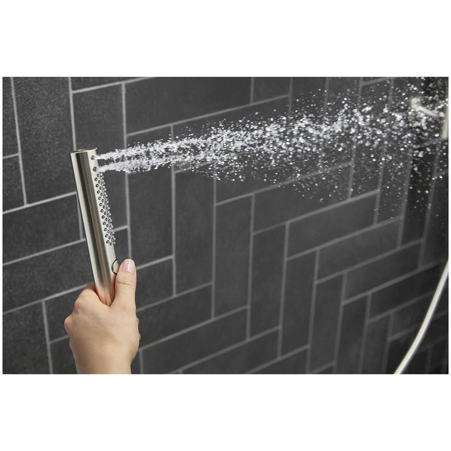 The clean contemporary look of the Shift + Round handshower complements a wide variety of style lines. Two spray options give you a personalized water experience, allowing you to target specific areas with a concentrated massage or full-coverage setting. This Shift model also features a lower flow rate for conserving water without compromising performance.