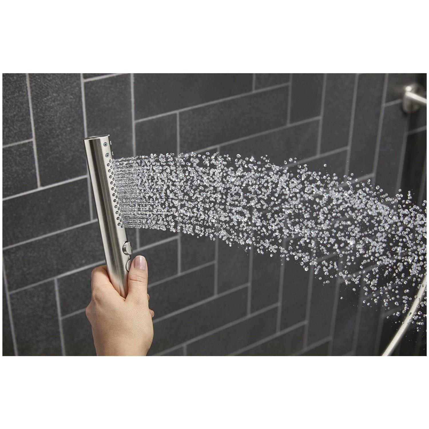 - Multifunction handshower offers full-coverage and targeted massage spray settings.