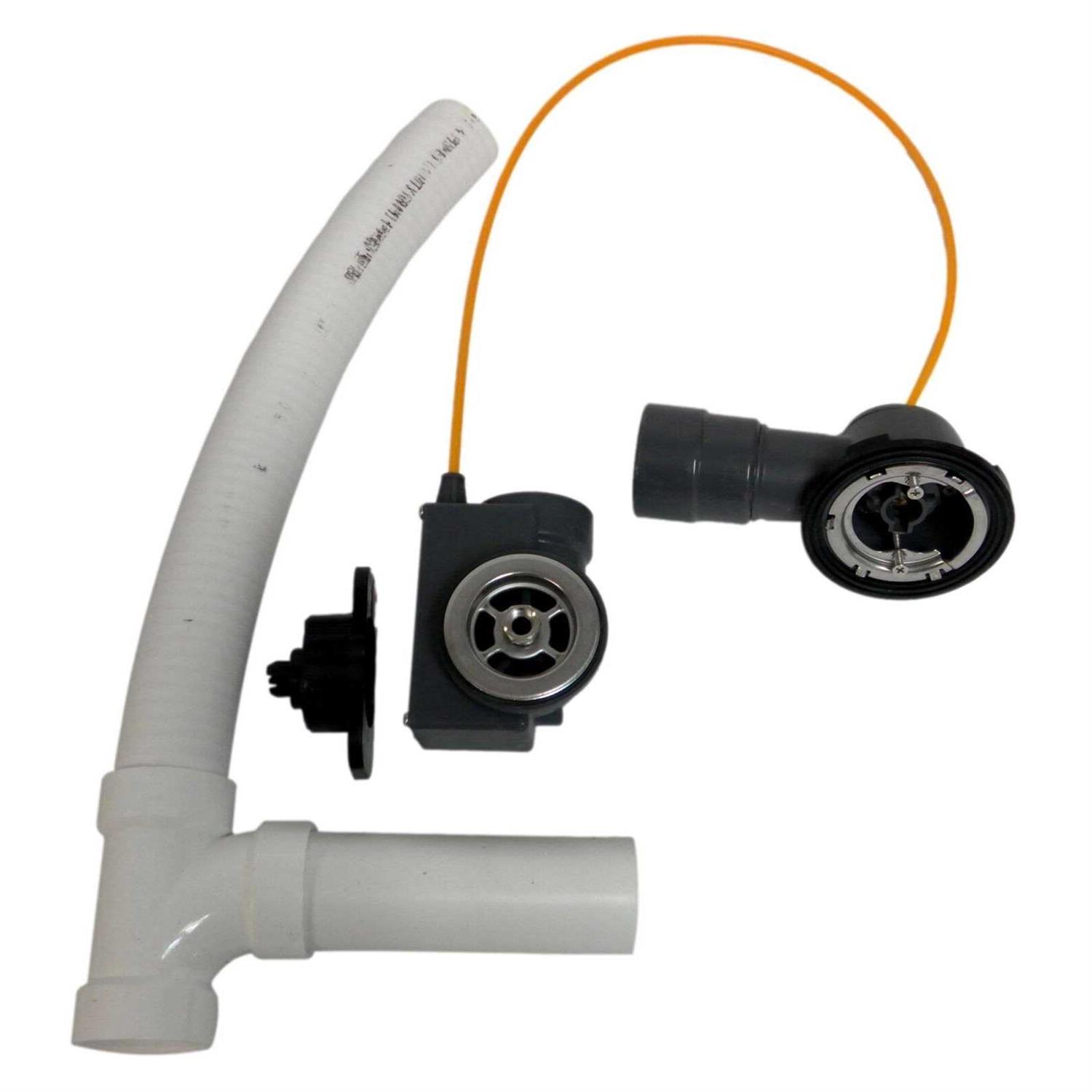 Designed for use with PureFlo trims, this PureFlo cable bath drain features easy installation and a design that minimizes clogging through the overflow. PureFlo’s modular design means you can use this PureFlo rough drain with any PureFlo handle trim kit. And the trim can be changed without behind-the-bath access, making it an easy, convenient choice for remodels or refreshing. Trim options include basic, contemporary, traditional, and Victorian designs in rotary turn or push-button styles to complement any bath decor, and are sold separately. For baths 14 (356 mm) to 21 (533 mm) deep from the center of the bath overflow outlet to the center of the bath drain outlet. 30 (762 mm) length external cable. Includes a tee, drain ell, and overflow ell with attached 1-1/2 OD Pipe Flexible overflow joint conforms to various bath angles. No internal linkages to minimize the potential for clogging. For use with any PureFlo rotary or push hand controls and pop-up drain stopper kit (sold separately). Flexible overflow neck for easy installation to fit various bath angles. Metal construction control handle and stopper.