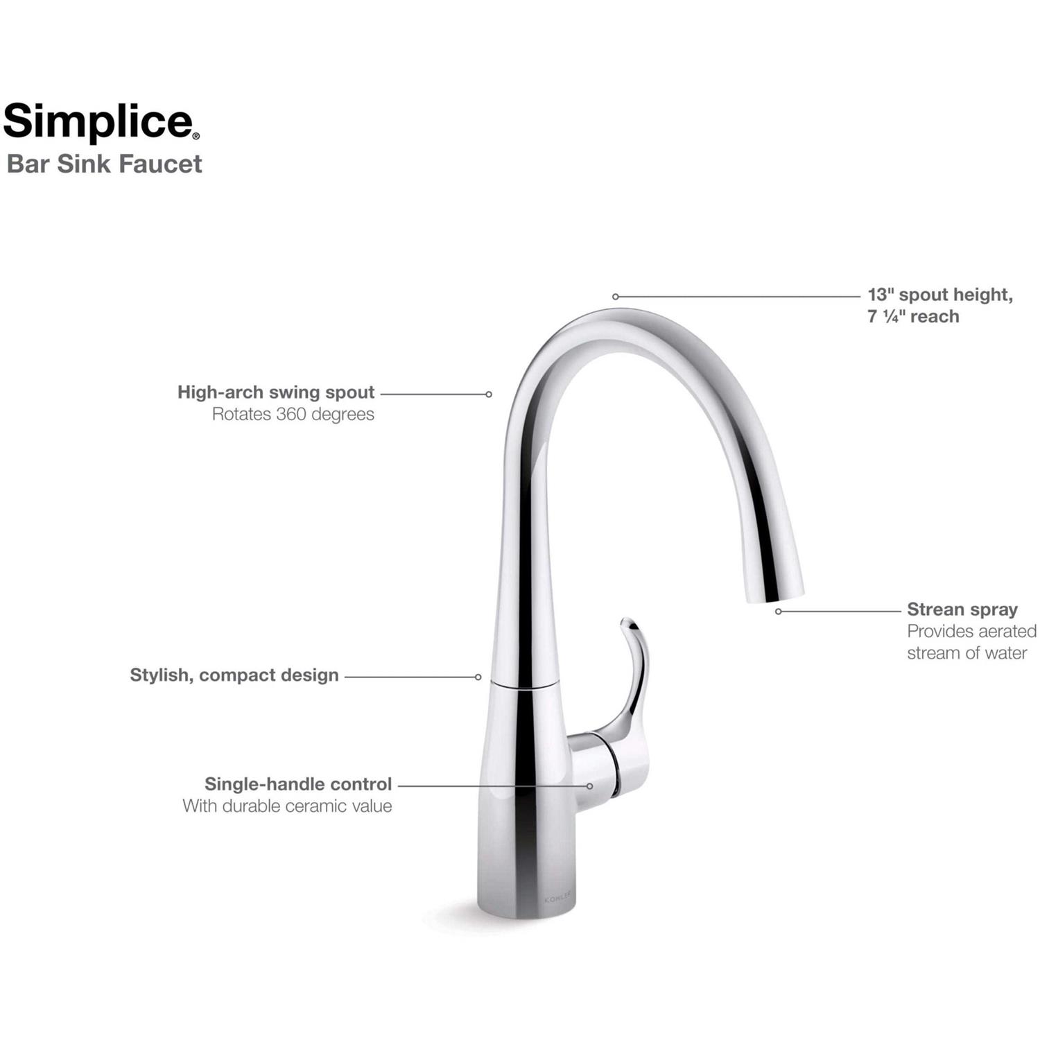 Kohler Ideal as a secondary sink for entertaining, food prep, and cleanup, this Simplice bar sink faucet combines an elegant, universal design with exceptional ergonomics and functionality. Coordinate this faucet with a simple primary kitchen sink faucet.