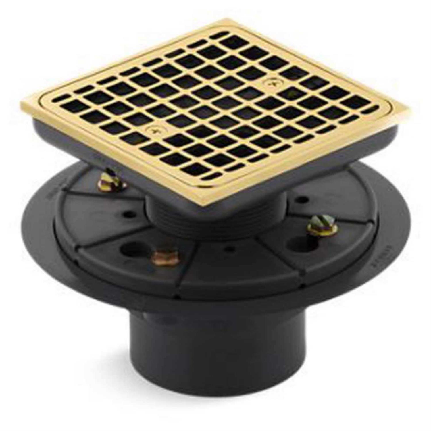 KOHLER K-9136-PB Square Design Tile-In Shower Drain, Vibrant Polished Brass