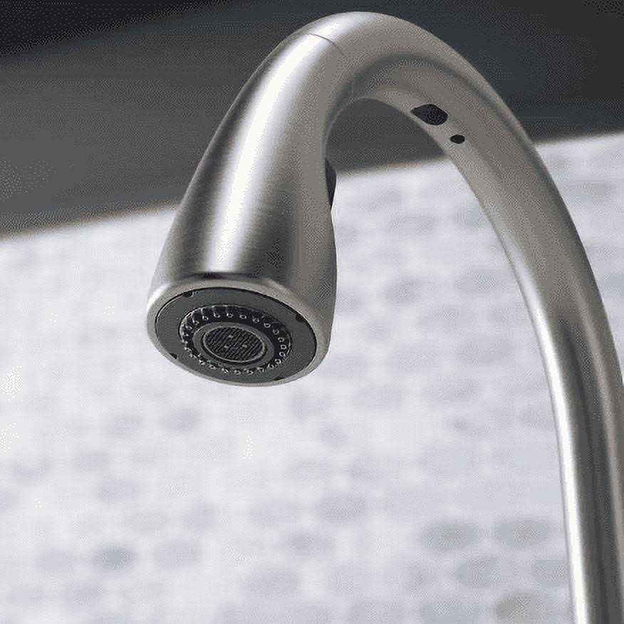 Beneath the soft triangular profile of this elegant statement piece lies the mechanics of modern equipment, including a state-of-the-art sensor located underneath the spout that works with your hand’s natural position to turn your water on and off. Response touchless technology is not only convenient, it also helps prevent the spread of germs and reduces soap and water stains on your sink deck. The Anessia touchless pull-down kitchen faucet adds a stunning upgrade to any kitchen.