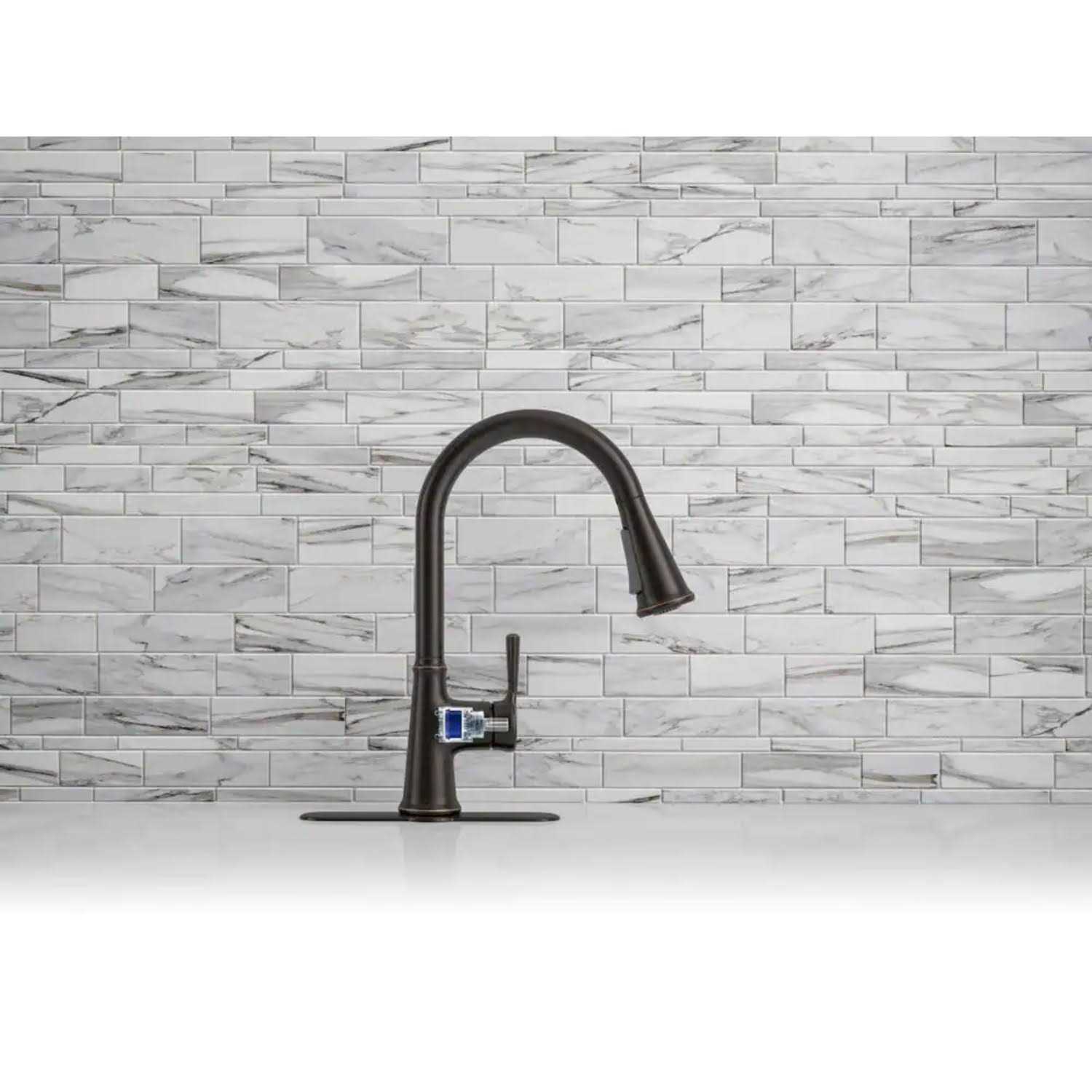 With clean lines, the Tyne kitchen faucet is a beautifully simple addition to nearly any decor. The high-arching spout easily clears pots and pans while the pull-down sprayhead featuring Sweep spray delivers a wide, forceful spray, simplifying kitchen cleanup. Pre-assembled supply hoses and quick-connect fittings make installation easy.