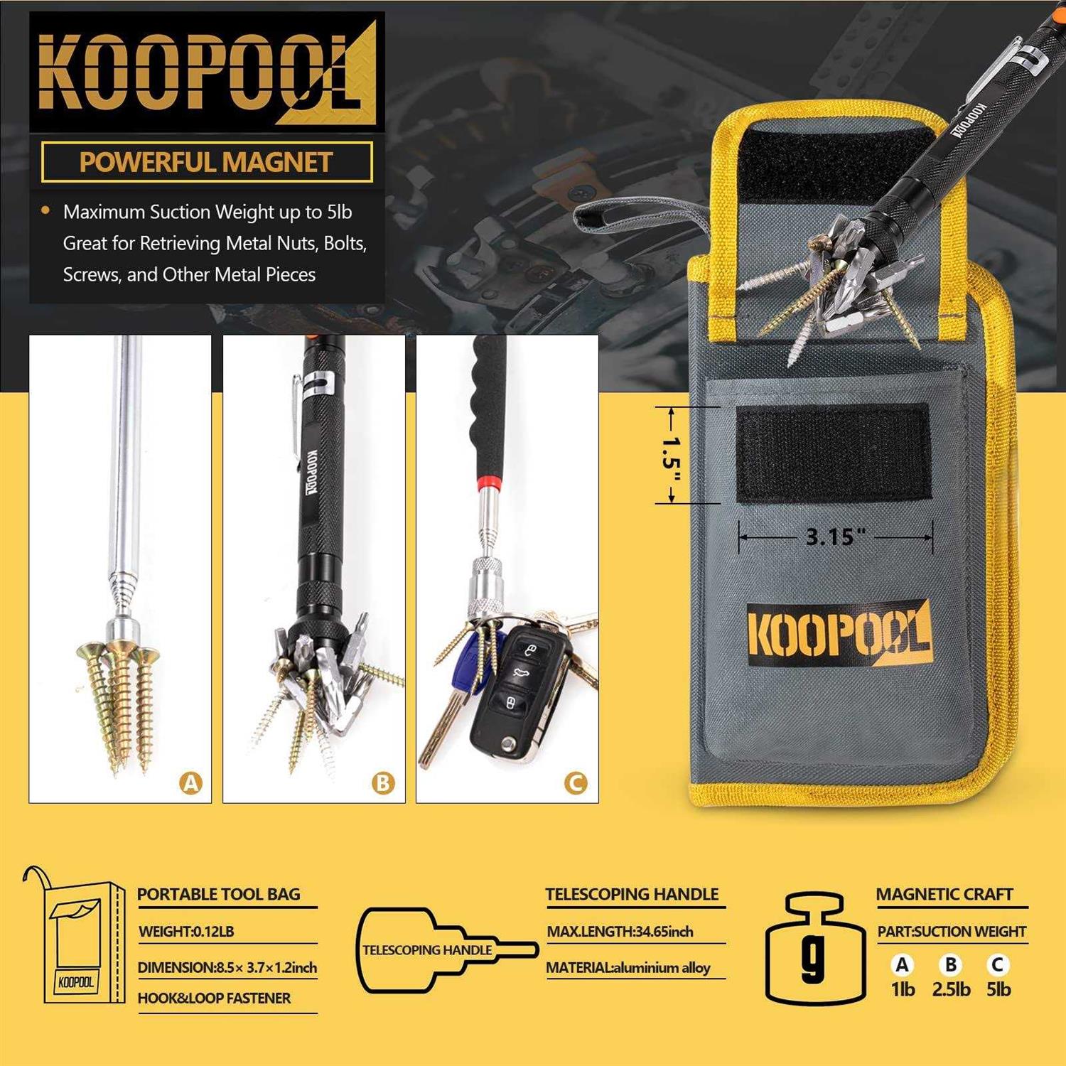 Be the first to review “KOOPOOL Telescoping Magnetic Pickup Tool Set-Extendable Magnet Flashlight with Inspection Mirror”