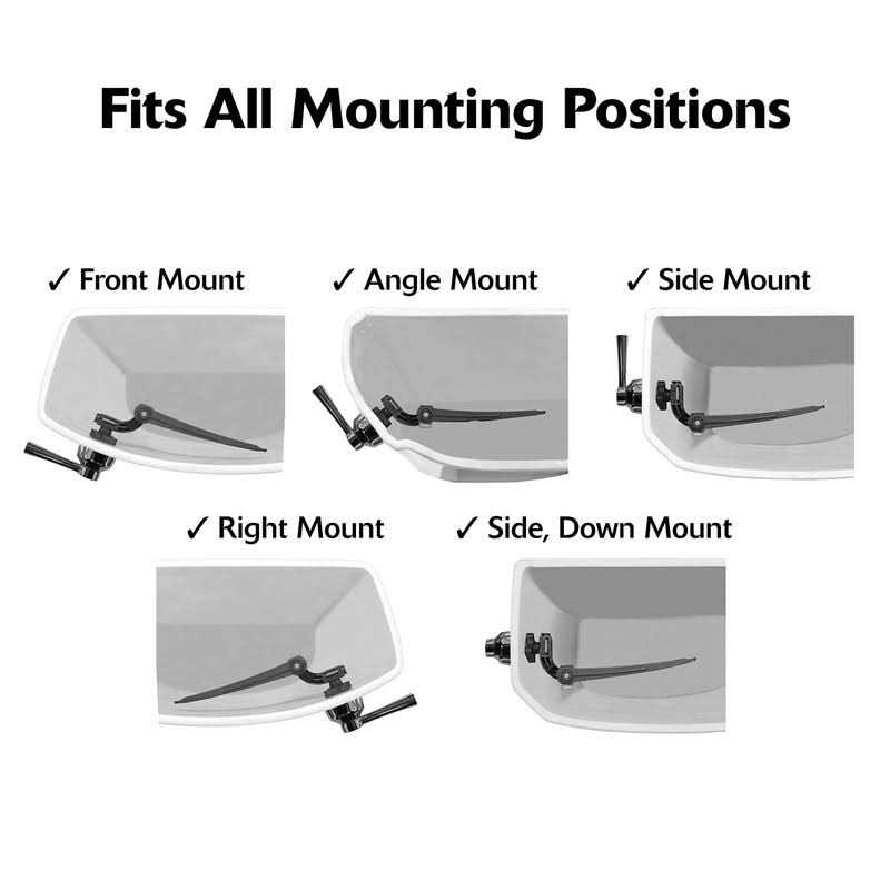 • Easily adjusts to fit all tank positions: front, angled, right and side mount toilet tanks