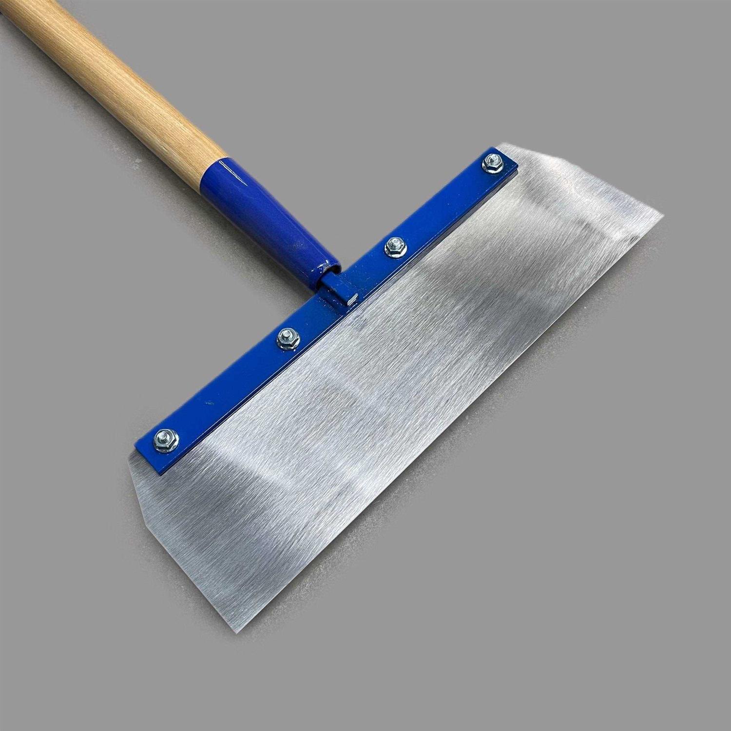 This multi-purpose tool cleans and shaves excess material from concrete and wood surfaces. This heavy-duty scraper is ideal for after work clean up as well as prepping surfaces for remodeling and refurbishments. The 14 In. replaceable blade (Kraft Tool #CC207) is firm but flexible with the proper amount of give. The blade is sandwiched between each side of the bracket for secure and safe fit. Four bolts secure the bracket, but make replacing the blade simple. The heavy-duty 60 In. shovel-type wood handle provides excellent leverage when scraping. A steel ferrule secures the handle. The potential uses during clean up makes this a must-have tool on a jobsite. Scrapes up old glue from floors or excess material from messy jobs. Use to clean excess concrete from concrete forms. Proudly made in the USA. Kraft Tool Co. has been an American manufacturer of quality hand tools for the concrete, masonry, asphalt, plaster, drywall, tile, floor covering, and leveling trades for over 35 years.