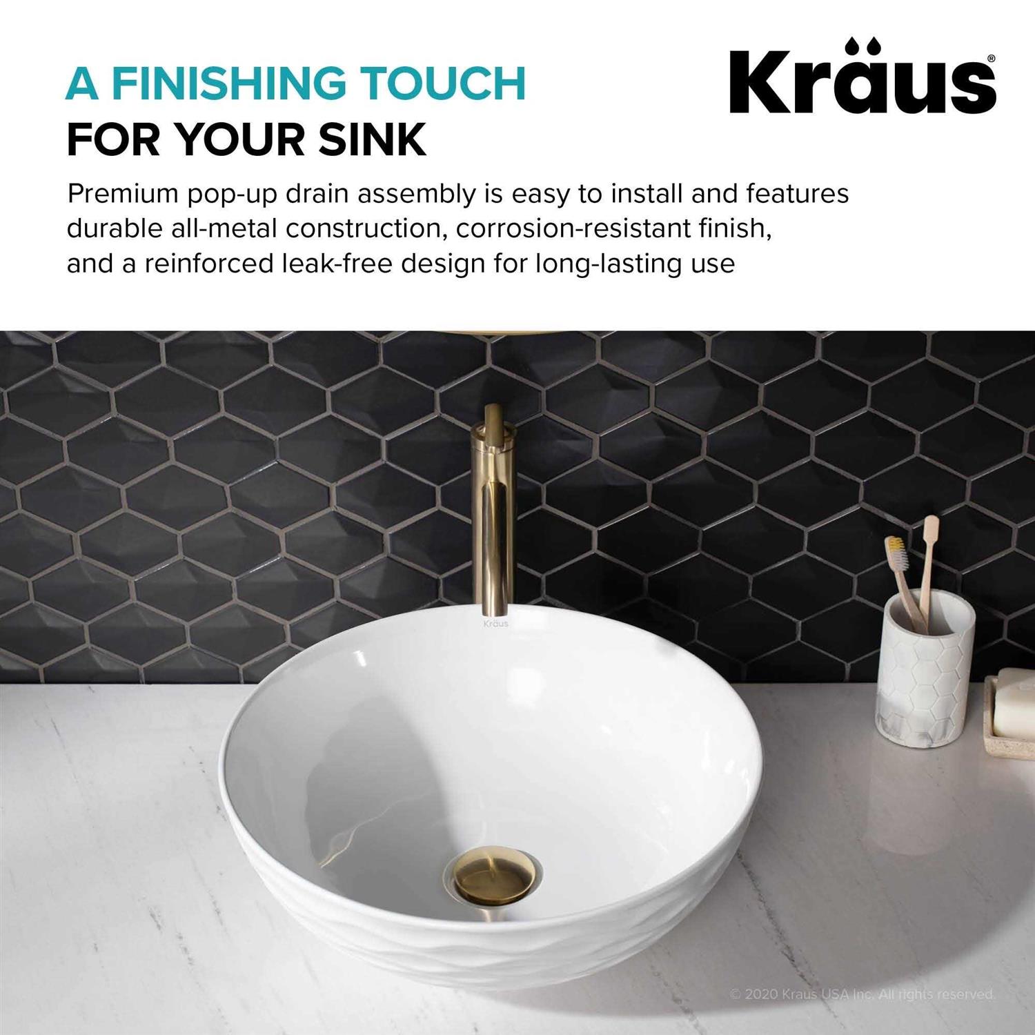 The perfect finishing touch for your bathroom sink, this premium pop-up drain assembly features a reinforced leak-free design and all-metal construction for maximum durability. All required rubber gaskets are included for easy installation. The corrosion-resistant finish will not fade or tarnish over time and comes in a range of options to match your bathroom faucet and create a beautifully coordinated look. Our goal is to create fixtures that inspire and empower the people that use them. Transform your kitchen and bath with KRAUS, and live beautifully.