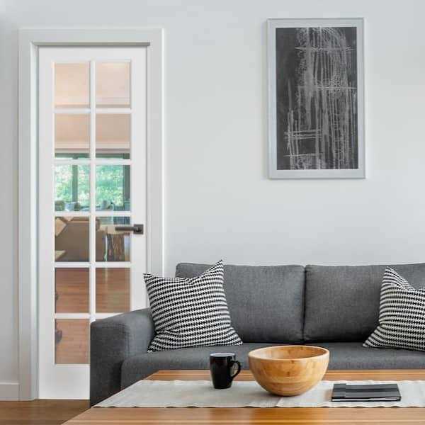 Create your dream open space concept with the Primed MDF 12 Lite TDL Interior Door Slab from Krosswood Doors. This French-inspired door features twelve true divided tempered glass windowpanes and hybrid MDF stiles and rails, engineered with a high-density foam core to regulate sound and temperature. The primed, solid pine edge banding provides a smooth surface that is ready to paint to complement your personal style.